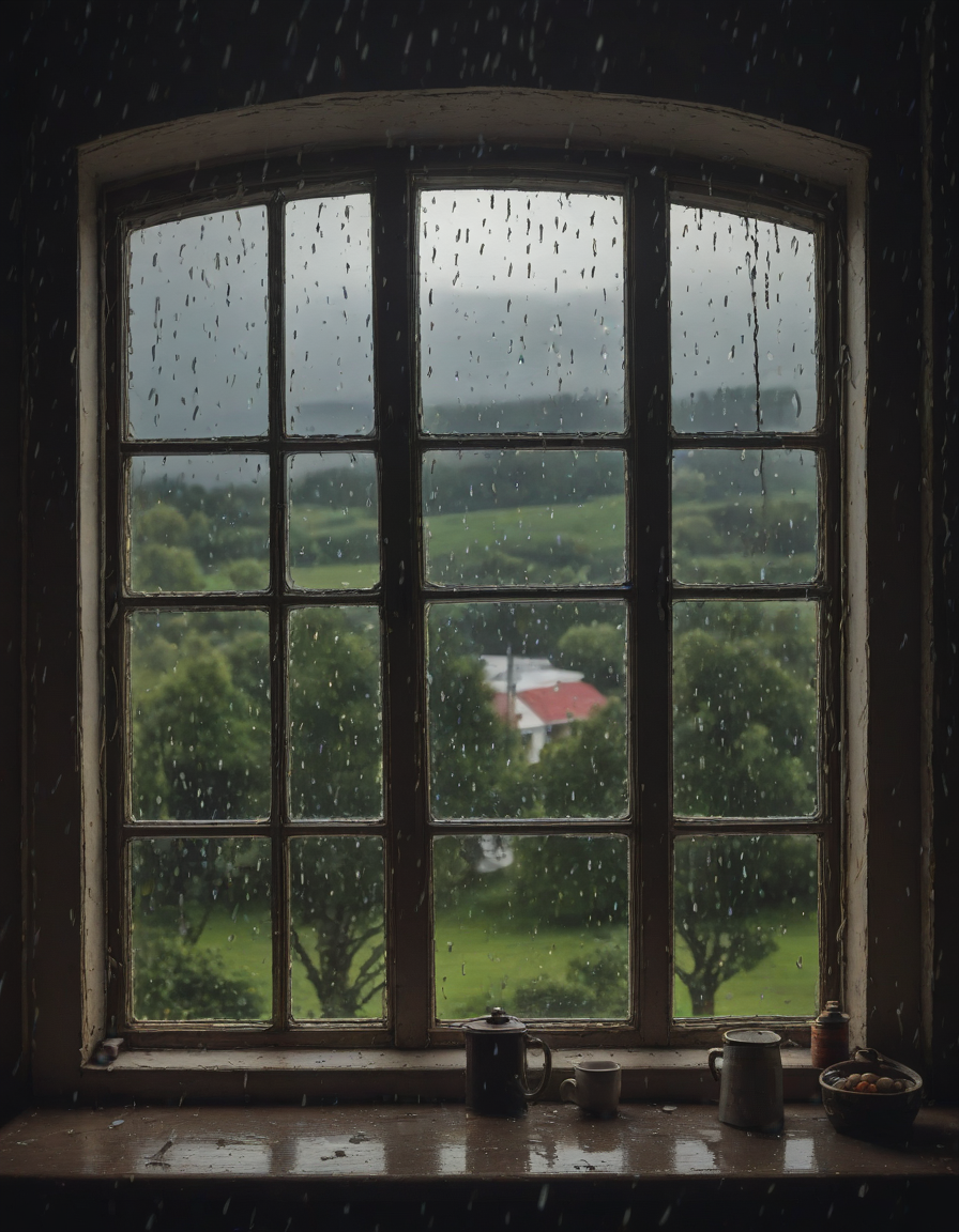 rolling hills, Raindrops blur the window, Bloodshot eyes