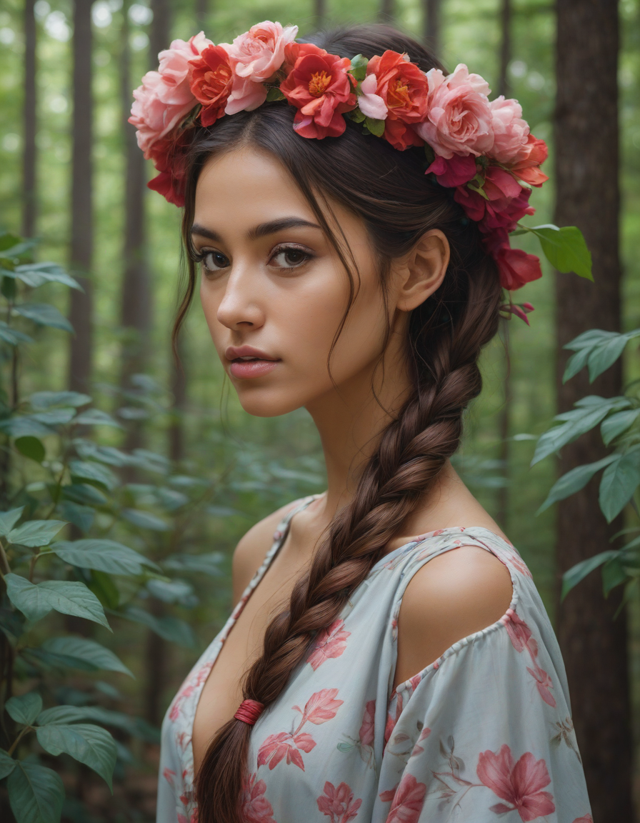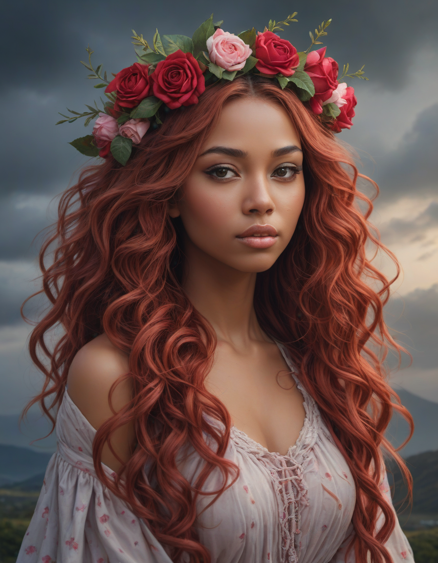 Crimson floral crown, vibrant dream, A painting of splendid beauty, cotton candy soft touches, extreme pain