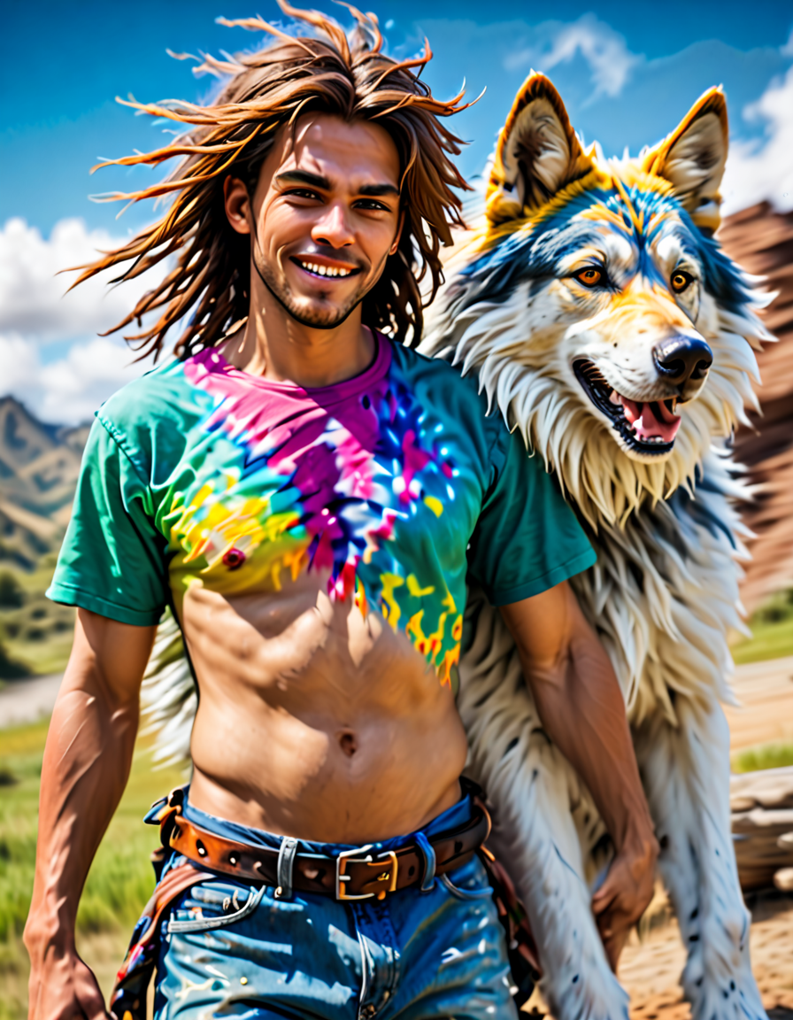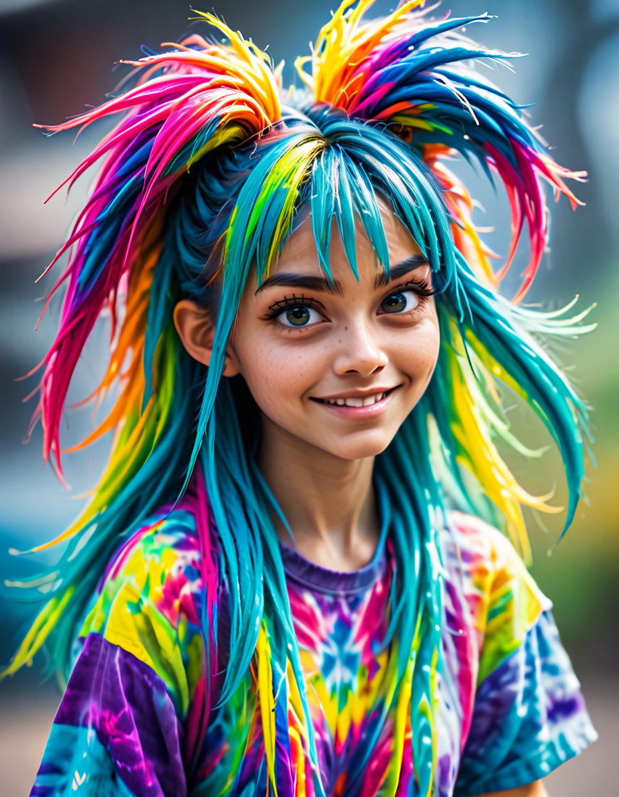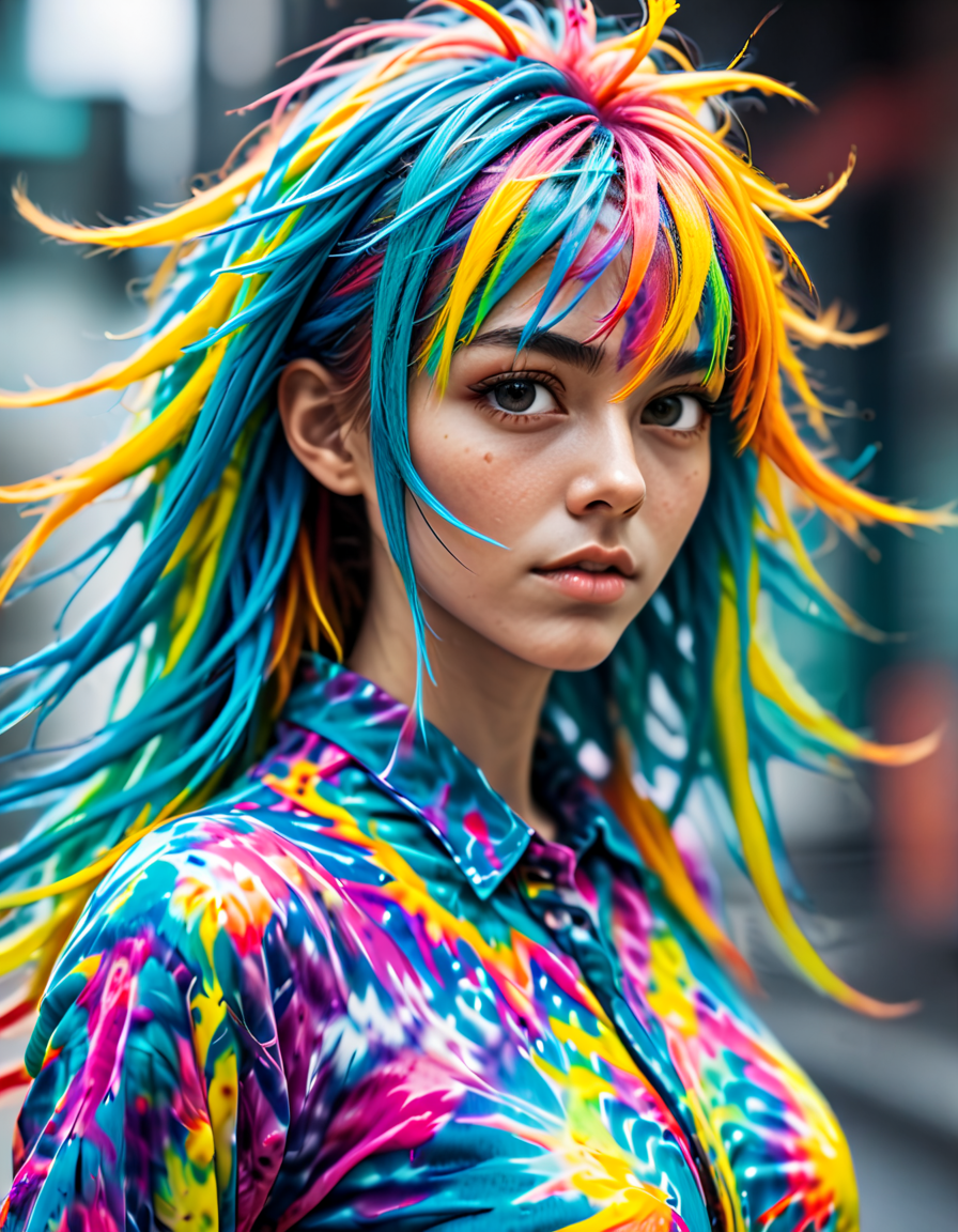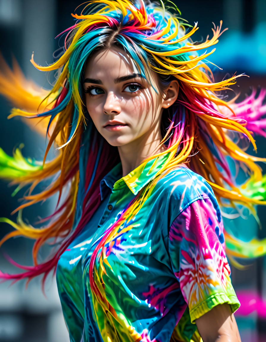 wearing colorful tie-dye, moti... (4 loras merged)