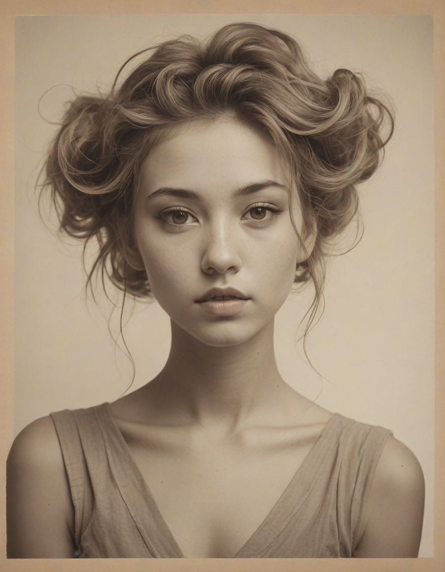 upside down person, charcoal sketches on textured paper, western, New Romantic 80s clothing, sepia toned photo, Dreamy gaze, high-fashion
