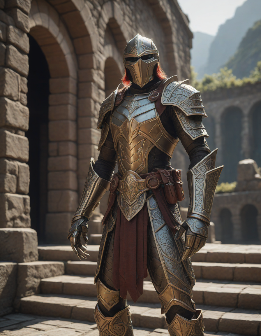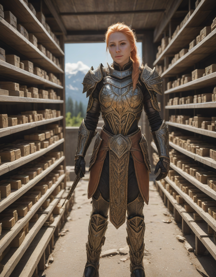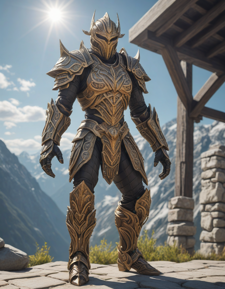 legendary, armor-clad hero, voxels, enjoying the sunshine outside, skyrim npc, Blinding speed