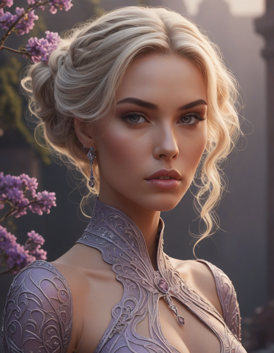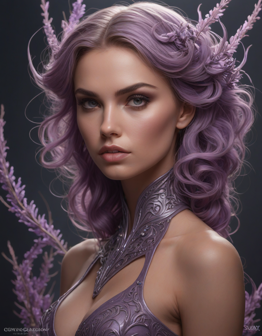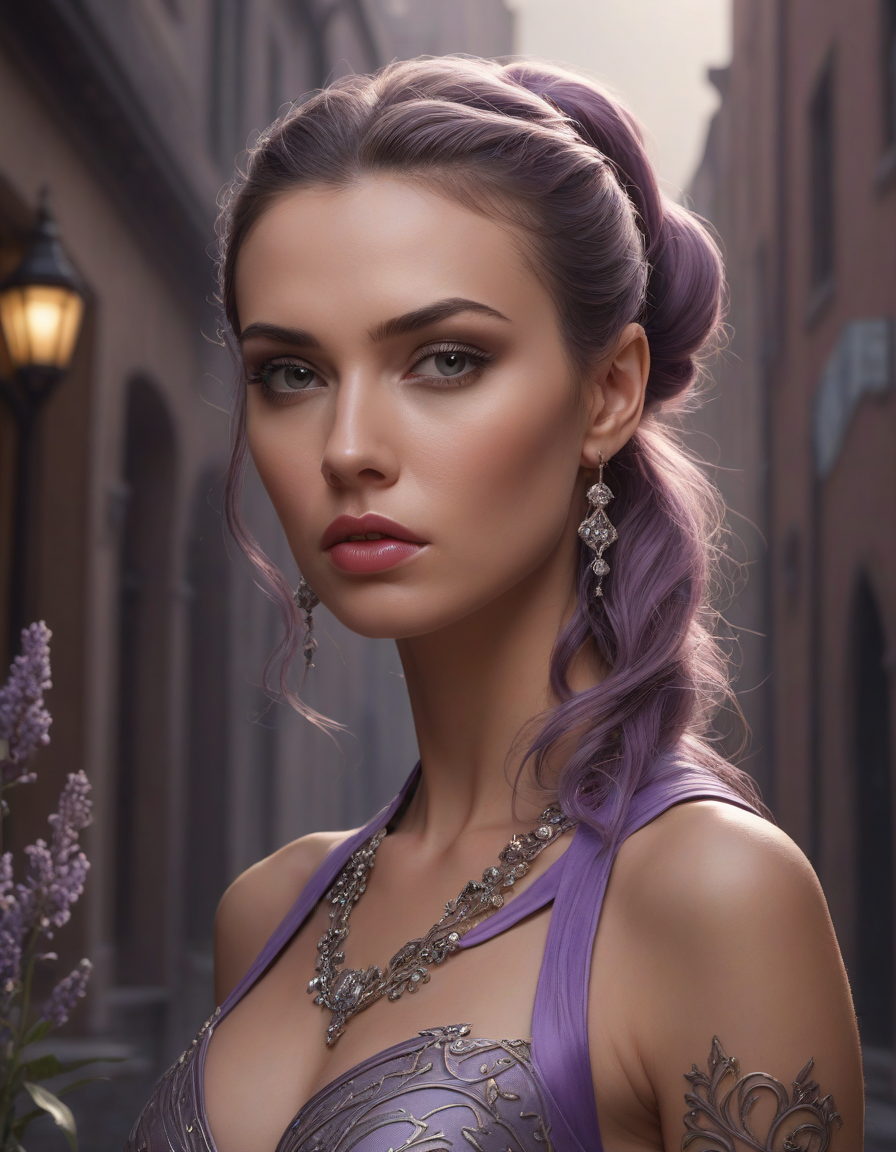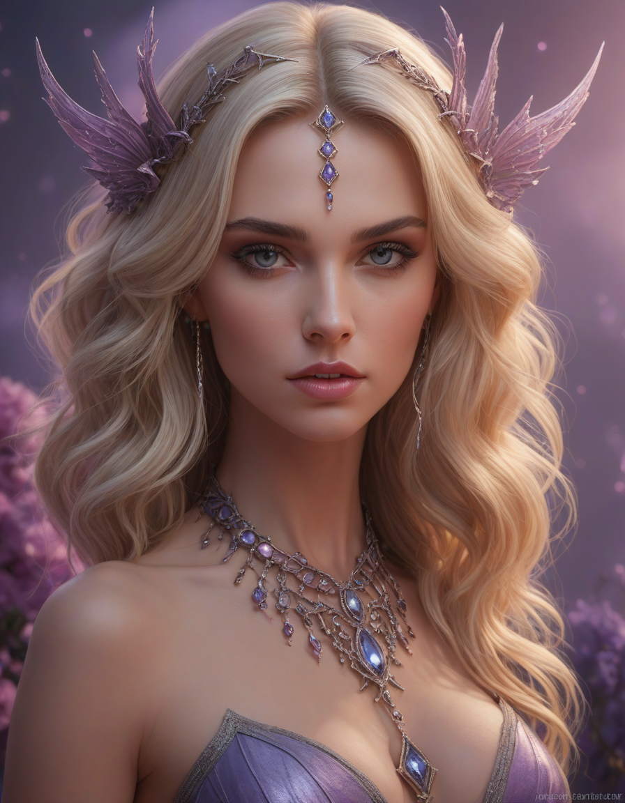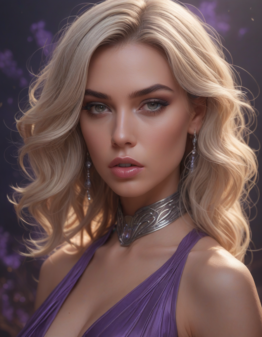 Lavender nebula, ethereal fantasy concept art, Highly Detailed, Extremely High Quality, Drawing, Digital Art, by Brom, Larry Elmore, Keith Parkinson, Sakimichan, Artgerm, Brom fantasy art, Elmore's epic art, Parkinson's art Sakimichan's ethereal art, Artgerm's dynamic figures, vivid color use, dreamlike textures, digital brush sophistication, mythical themes, energy vibrance, fantasy immersion, intricate, high detail, digital artwork, illustrative, painterly, matte painting, highly detailed, magnificent, celestial, ethereal, painterly, epic, majestic, magical, fantasy art, cover art, dreamy, ethereal fantasy concept art, glow effects, godrays, Hand drawn, render, 8k, octane render, cinema 4d, blender, dark, atmospheric 4k ultra detailed, cinematic, Sharp focus, big depth of field, Masterpiece, colors, 3d octane render, 4k, surreal worlds, mystical lighting, rich backgrounds, world-building excellence, expressive faces, action dynamics, magical realism, atmospheric mood, visual storytelling, fantasy architecture, motion fluidity, character depth, otherworldly beauty, magic elements, lush landscapes, color contrasts, concept art, trending on artstation, hyperrealistic, Vivid colors, extremely detailed CG unity 8k wallpaper, trending on CGSociety, Intricate, High Detail, dramatic, artist Brom, Gerald Brom, Larry Elmore Art, Keith Parkinson Art, detailed anatomy, , scowling, High-arched eyebrows, pronounced cheekbones, very thick full lips, thick full lips, lip fillers, narrow facial structure, small chin, pointed nose tip, deep-set eyes with visible upper eyelid space, prominent jawline, smooth forehead, elongated face shape, subtle eye creases, thin nose bridge, voluminous cheek appearance, defined lip contour, sculpted facial silhouette, soft nasolabial folds, high forehead, delicate ear shape, refined jaw angle, sleek facial contour, radiant skin texture, luminous eye reflection, sculpted eyebrow tail, accentuated cupid's bow, pronounced chin dimple, light-catching cheek highlight, defined eyelid crease, long eyelashes, symmetrical face balance, graceful neck line, airy eyebrow density, contoured cheek shading, polished skin finish, captivating gaze, structured nose profile, gleaming skin surface., formal, elegant evening wear, Scarlet lips parted