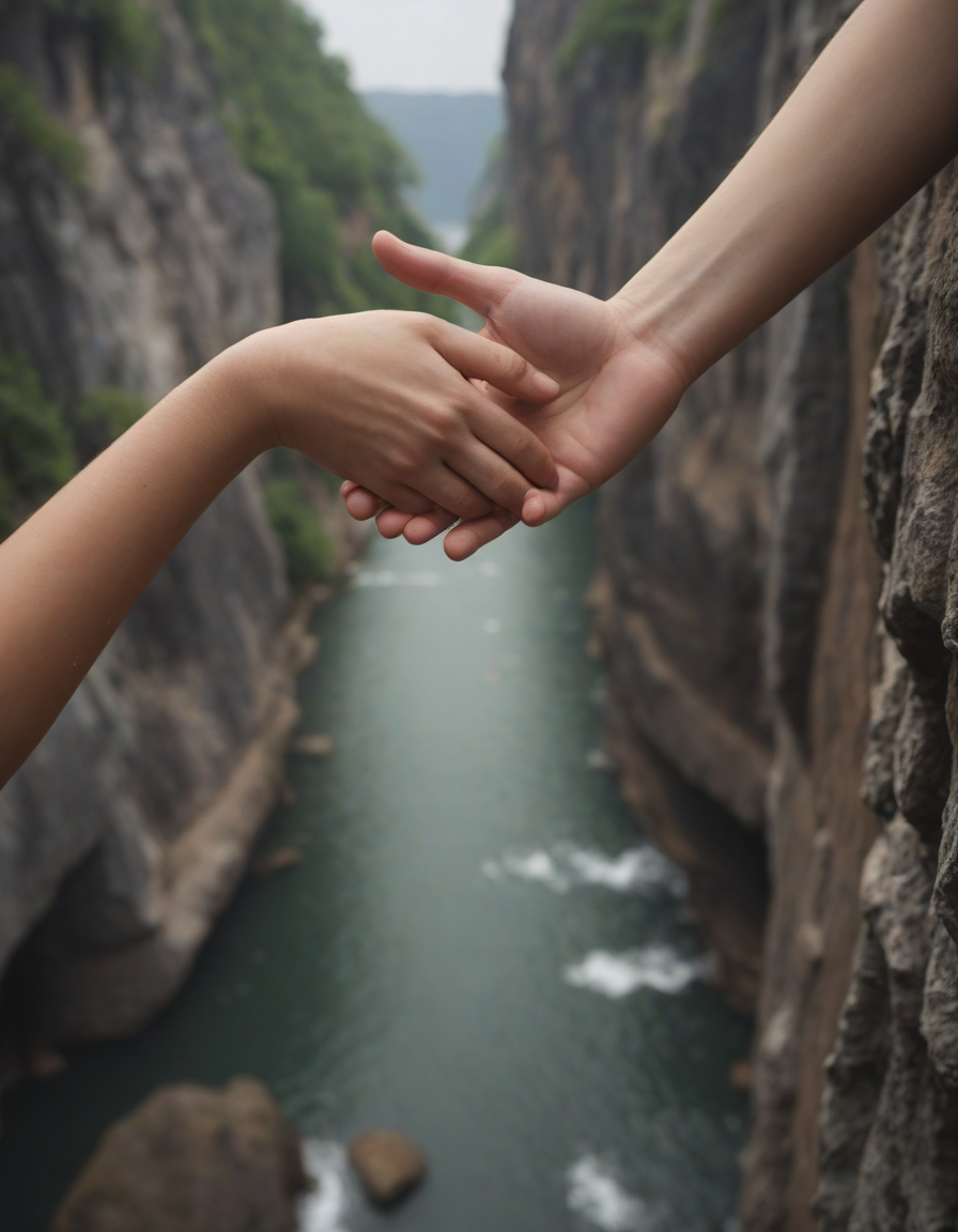 On edge, hands reaching out fo... (2 loras merged)