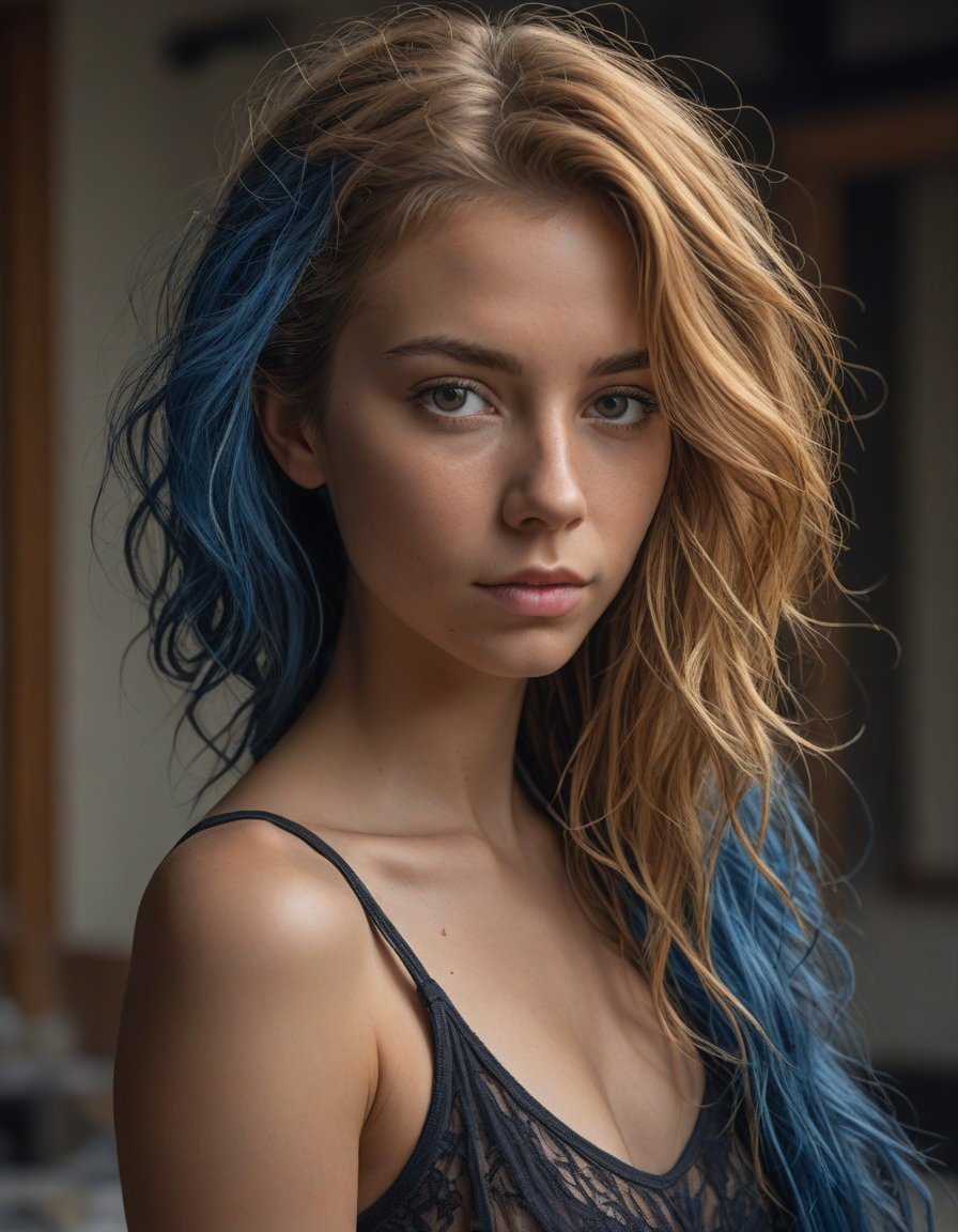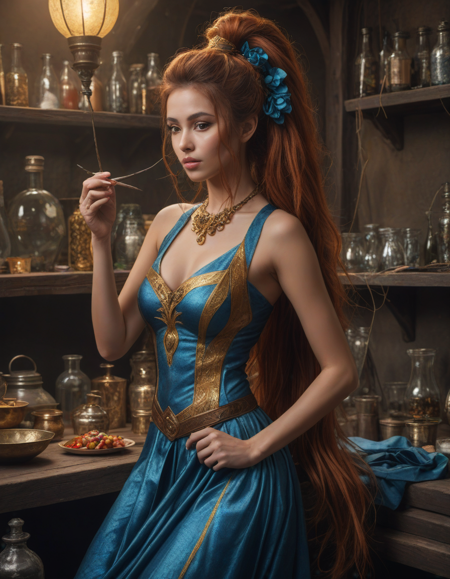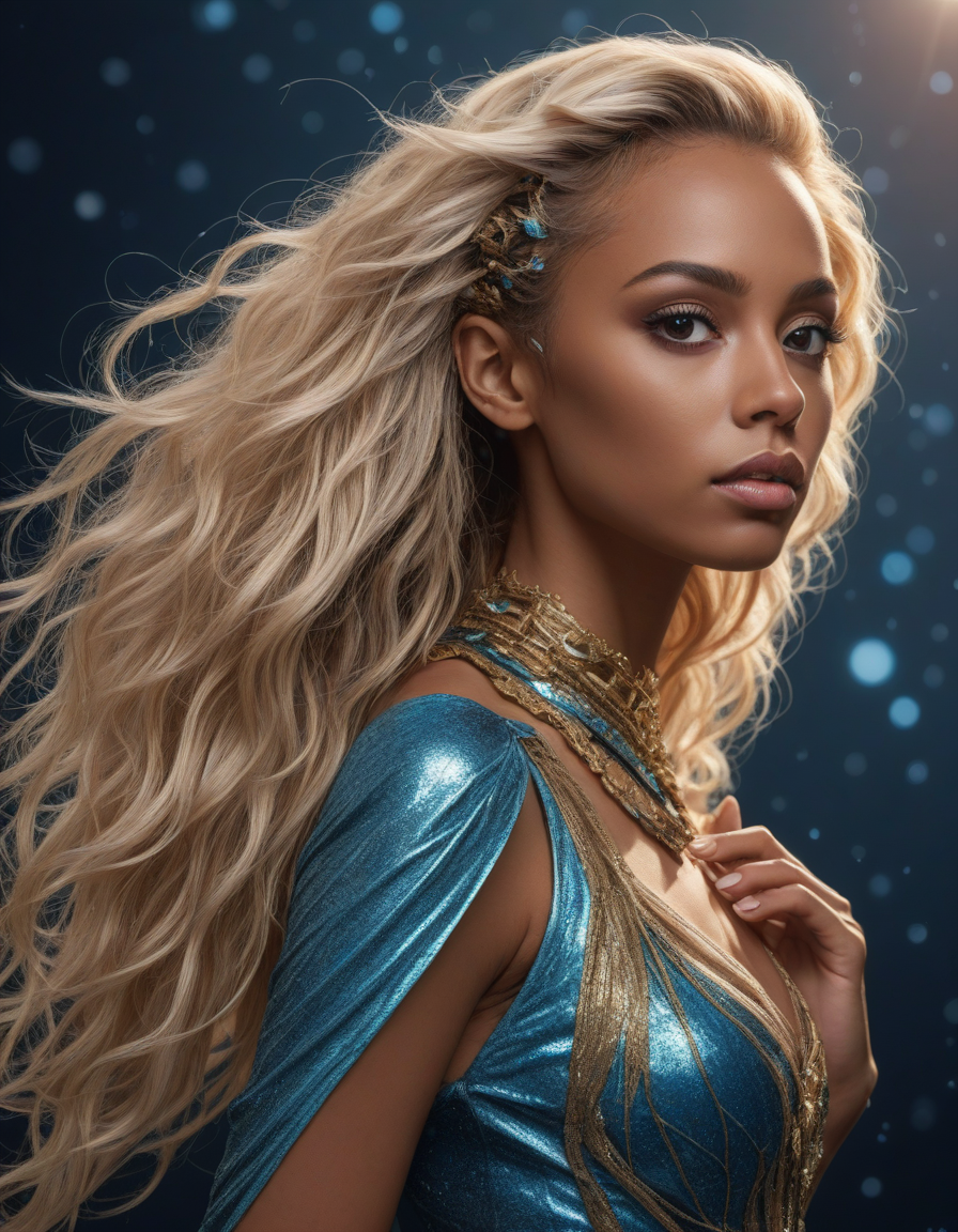intense, mexican, paint blending, Dazzling as a star, rockstar with wild hair, creative, A fusion of human and animal, very attractive, Glistening sapphire tail with each scale glimmering in the sunlight, Warmly Welcoming, glistening silk