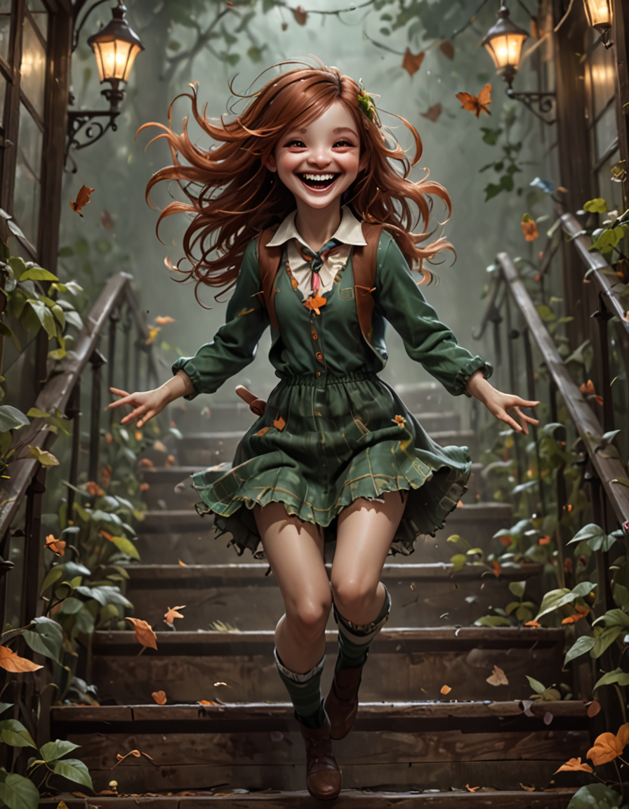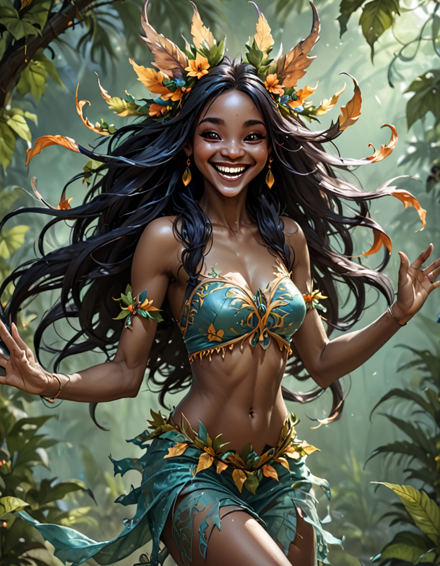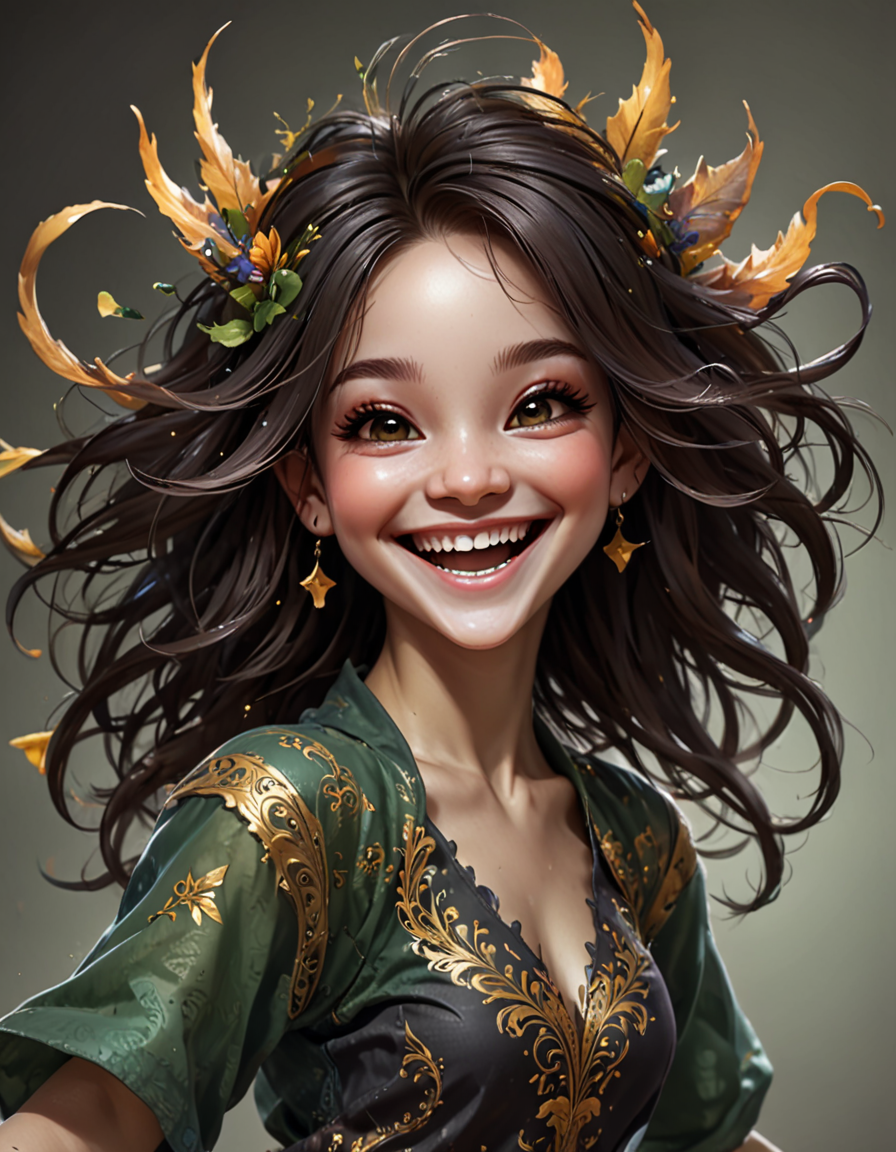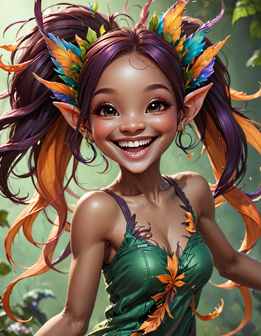 Stern, stoic, unamused expression→Fae, spritely, mischievous expression
