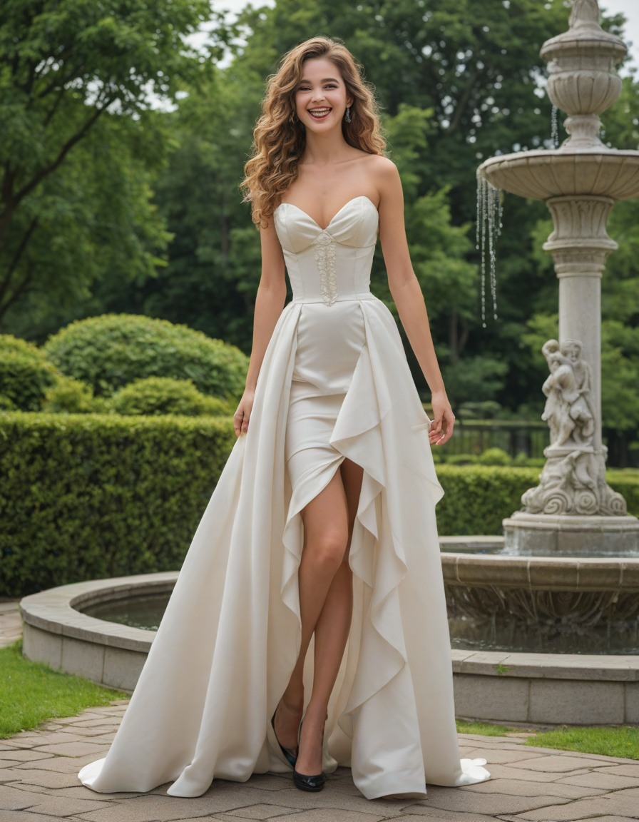 laughing, elegant, high waist tight overknee stiletto boots, Wide Skirt, wide ballgown hem, a line skirt, petticoat skirt, , looking at viewer, excessive cleavage, low neckline, revealing chest, revealing cleavage, cleavage-baring, revealing, excessively revealing, very revealing, lowcut, lowrise,
