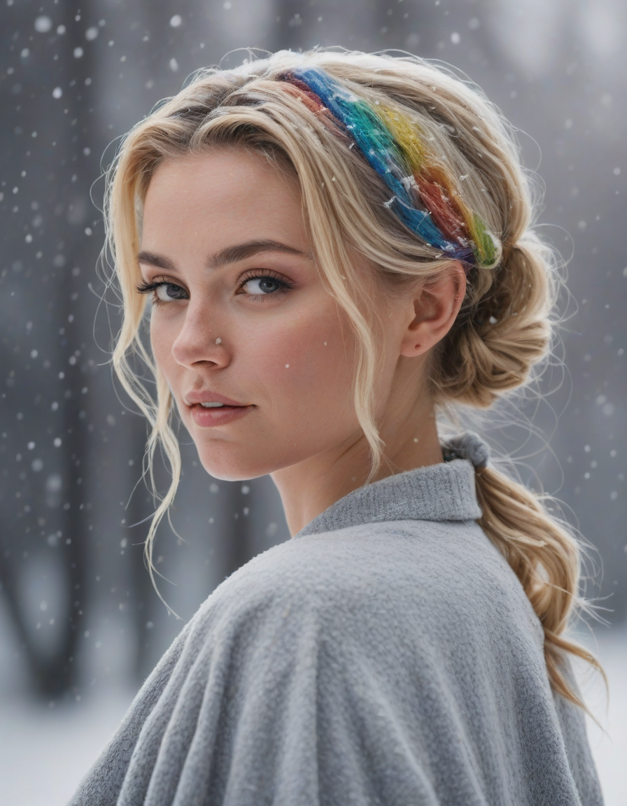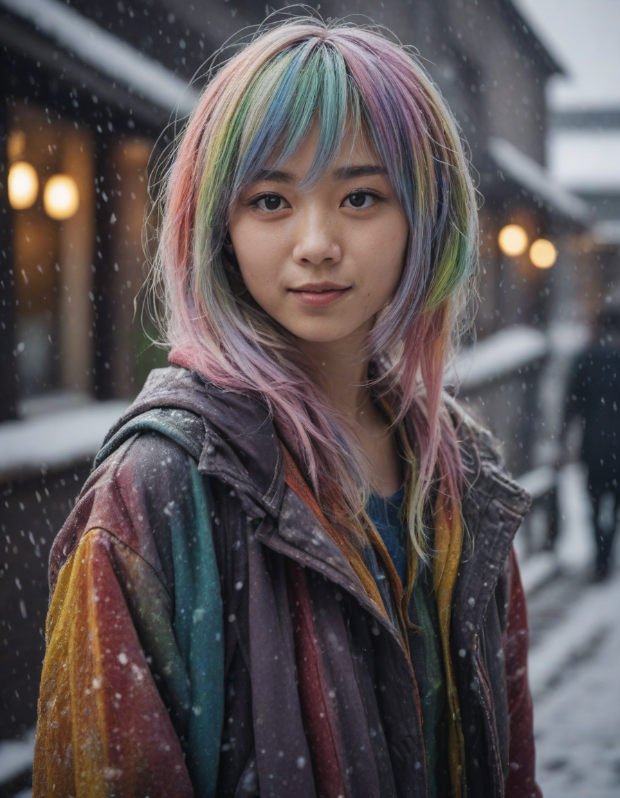 Rainbow-colored splotches, interesting, Look of pride, snowing,snow-covered