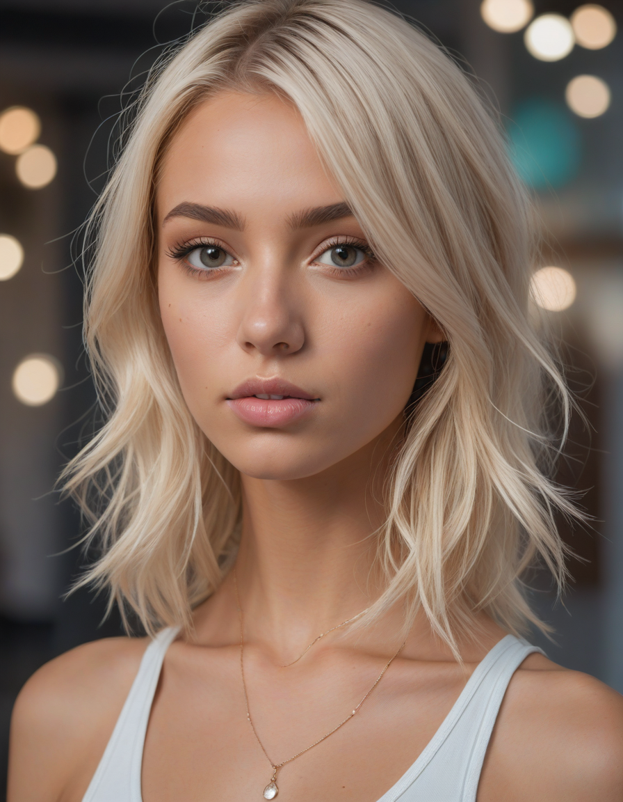 wearing sleeveless leotard, wearing one peice clothing, leotard, sleeveless, , Wielding a one-handed weapon in both hands, one-handed weapon, weapon, , Visualize a photorealistic portrayal of an 18-year-old high school senior girl, epitomizing the e-girl aesthetic with a blend of internet culture's vibrancy and personal audacity. Clad in an oversized striped shirt under a black graphic t-shirt dress, her style is a testament to e-girl fashion's layered intricacy, complemented by fishnet tights and chunky boots. Her makeup features dramatic winged eyeliner, neon eyeshadow, and dark lipstick, with blush bringing her face to life. Accessories like silver chains and a heart pendant choker, along with pastel or neon hair streaks, enhance her playful rebellion. Standing hands-on-hips, she exudes confidence and individuality against a backdrop suggestive of e-girl life, with neon signs and string lights. This scene captures her bold identity and expressive spirit at this pivotal moment., oval face shape, almond-shaped eyes, voluminous lashes, slightly arched eyebrows, narrow nasal bridge, rounded nose tip, symmetrical nostrils, full lips, pronounced cupid's bow, slightly fuller lower lip, defined cheekbones, rounded chin, smooth complexion, softly contoured jawline, balanced facial proportions, symmetrical features, gently curved eyelids, soft brow ridge, harmonious cheek to jawline transition, subtle philtrum, delicate ear lobes, straight blonde hair, clear skin, hooded eyelids, light pink lip color, slightly pouty expression, casual pose with hand on face, slight head tilt, indoor lighting, Light blue irises, Medium-thickness eyebrows, Softly angled eyebrows, A hint of freckles across the nose and cheeks, Natural makeup, Gentle frown lines between the eyebrows, Soft nasolabial folds, Smooth forehead, Subtle dimple on the chin, Clear facial contour without distinct shadows, Even skin tone with a hint of natural pink undertones, Slightly rosy cheeks, Tapered jawline, Fine hair texture with gentle waves, Youthful appearance with soft facial features, wearing complete set of armor, wearing full armor, Wearing chest armor, wearing leg armor, wearing feet armor, wearing bracer, wearing pauldrons,, brick wall -> great window view, Lip fillers, thick full lips, enhanced lip volume, accented cupid's bow, Rhinoplasty, refined nose shape, straightened nasal profile, facial symmetry, Botox injections, smoothed facial lines, reduced wrinkles, youthful appearance, Cheek fillers, pronounced cheekbones, sculpted contours, lifted cheeks, brightened eyes, reduced under-eye bags, rejuvenated area, Liposuction contoured shape, reduced excess fat, sculpted physique, Dermal fillers, restored volume, smoothed texture, diminished lines, strengthened definition, balanced proportions, enhanced jawline, Facelift, tightened skin, reduced sagging, improved skin tone, reduced imperfections, enhanced clarity, Blepharoplasty, Reduced puffiness, restored youthful eye contour, Enhanced chin shape, improves facial harmony, strengthened jawline definition, symmetry facial features, golden_ratio, provocative clothing, slutty clothing, skimpy clothing, revealing clothing, seductive clothing, coquettish clothing, coquettish, seductive, taboo, sheer clothing,