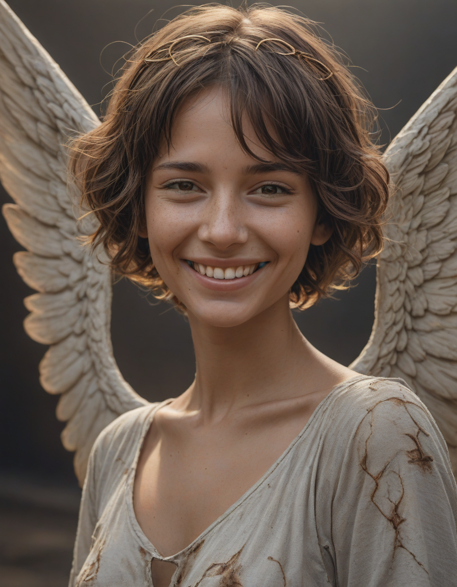 Shame, Distorted, scorched earth, pleased, Smiling angel with halo