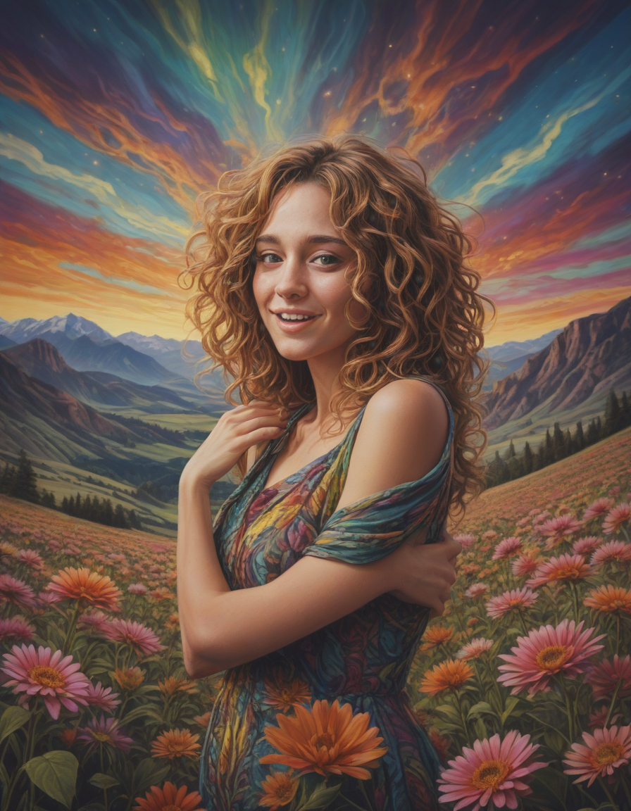 very goofy expression, hugs embracing tightly, psychedelic trip, squinting, Glorious