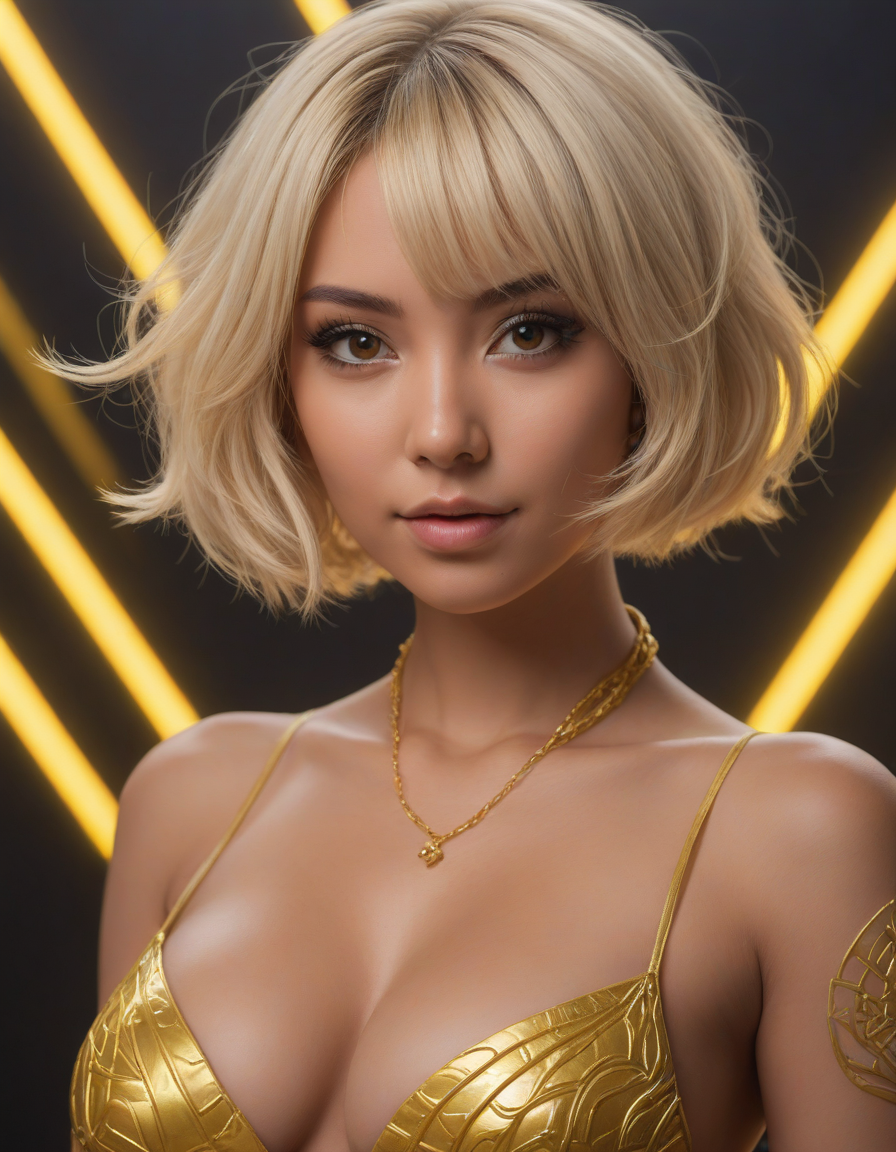 kitsune, a sharp, first portrait with bokeh effect, Gigantic breasts, colossal breasts, Massive breast size, extremely large bust, highly detailed breast texture, pronounced cleavage detail, voluminous bust appearance, expansive chest contour, significant bust projection, ample breast volume, full breast shape, wide breast base, noticeable bust prominence, deep cleavage visibility, generous breast silhouette, broad chest dimension, extensive breast coverage, prominent bust curvature, striking breast outline, substantial breast fullness, enhanced breast contour, dominant chest profile, opulent bust aesthetics, profound chest expansion, lavish breast dimensions, extensive cleavage display, pronounced breast roundness, anime, grinning from ear to ear, yellow, magical energy swirling around