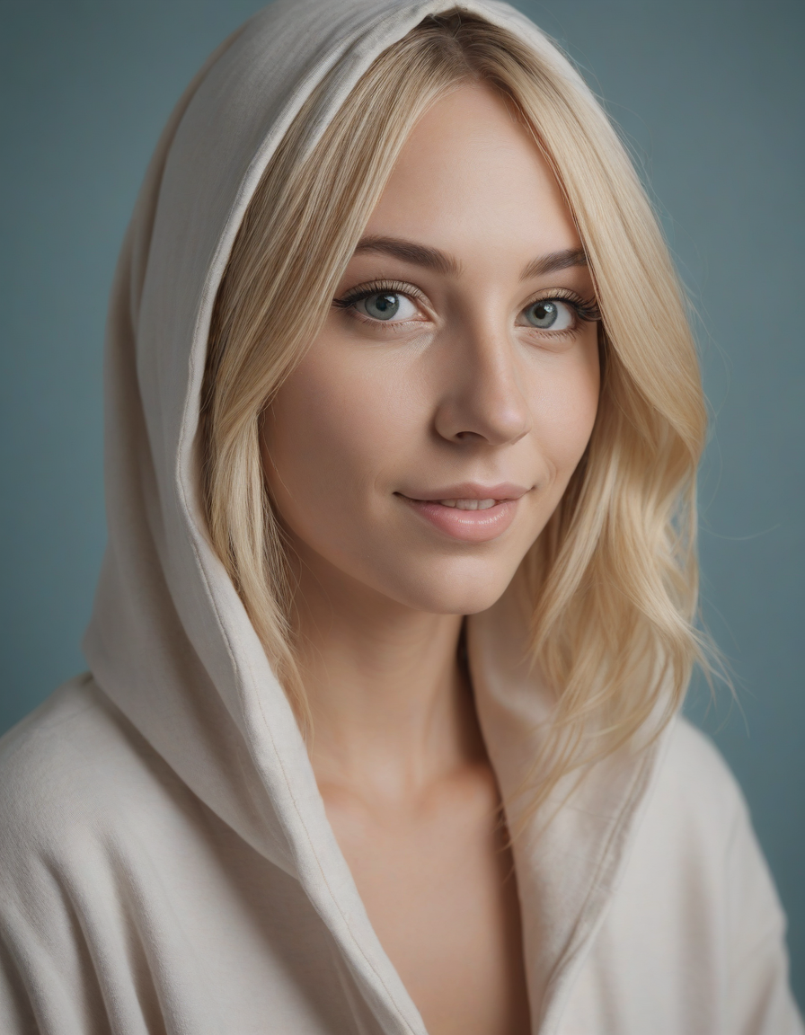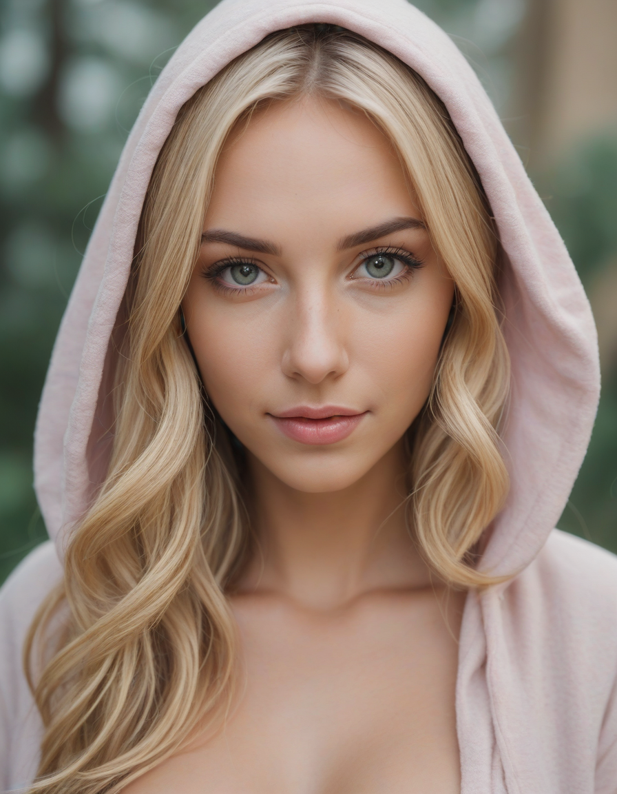 wheres waldo cosplay, whimsical fairytale, oval face shape, almond-shaped eyes, voluminous lashes, slightly arched eyebrows, narrow nasal bridge, rounded nose tip, symmetrical nostrils, full lips, pronounced cupid's bow, slightly fuller lower lip, defined cheekbones, rounded chin, smooth complexion, softly contoured jawline, balanced facial proportions, symmetrical features, gently curved eyelids, soft brow ridge, harmonious cheek to jawline transition, subtle philtrum, delicate ear lobes, straight blonde hair, clear skin, hooded eyelids, light pink lip color, slightly pouty expression, casual pose with hand on face, slight head tilt, indoor lighting, Light blue irises, Medium-thickness eyebrows, Softly angled eyebrows, A hint of freckles across the nose and cheeks, Natural makeup, Gentle frown lines between the eyebrows, Soft nasolabial folds, Smooth forehead, Subtle dimple on the chin, Clear facial contour without distinct shadows, Even skin tone with a hint of natural pink undertones, Slightly rosy cheeks, Tapered jawline, Fine hair texture with gentle waves, Youthful appearance with soft facial features, smiling brightly in a fancy dress, Relaxed, Cloaked shadow, happy, massive-breast-size, extremely-large-bust,