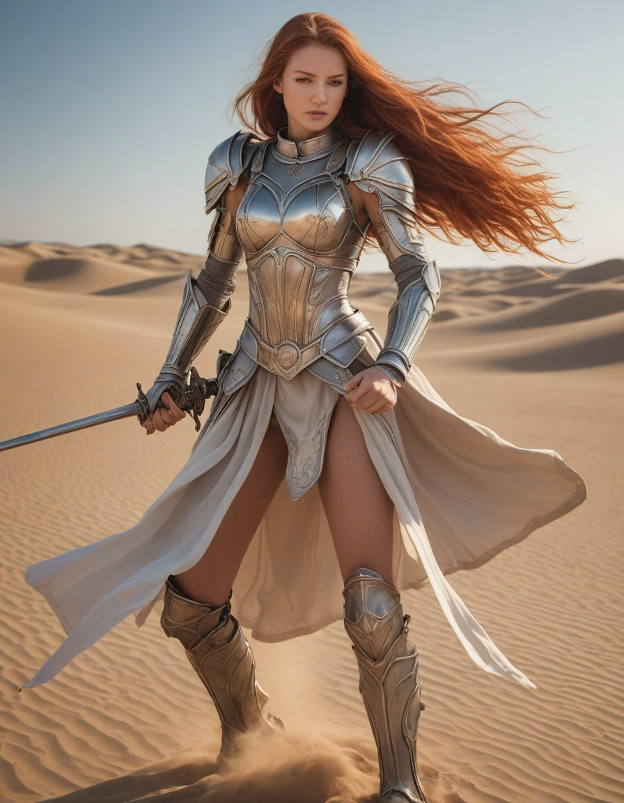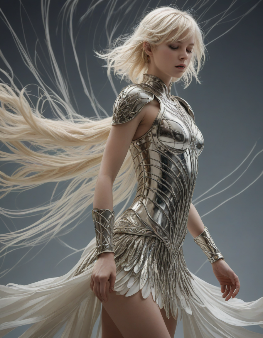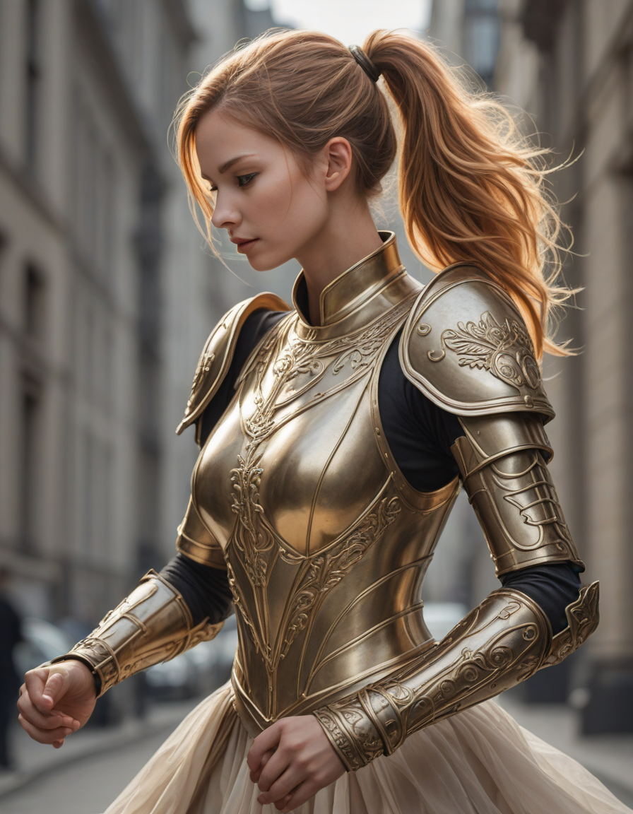 heroic, shining-armored knight, Dream within a dream, Swift, agile movements of a dancer in perfect harmony, quizzical expression, dreamscape
