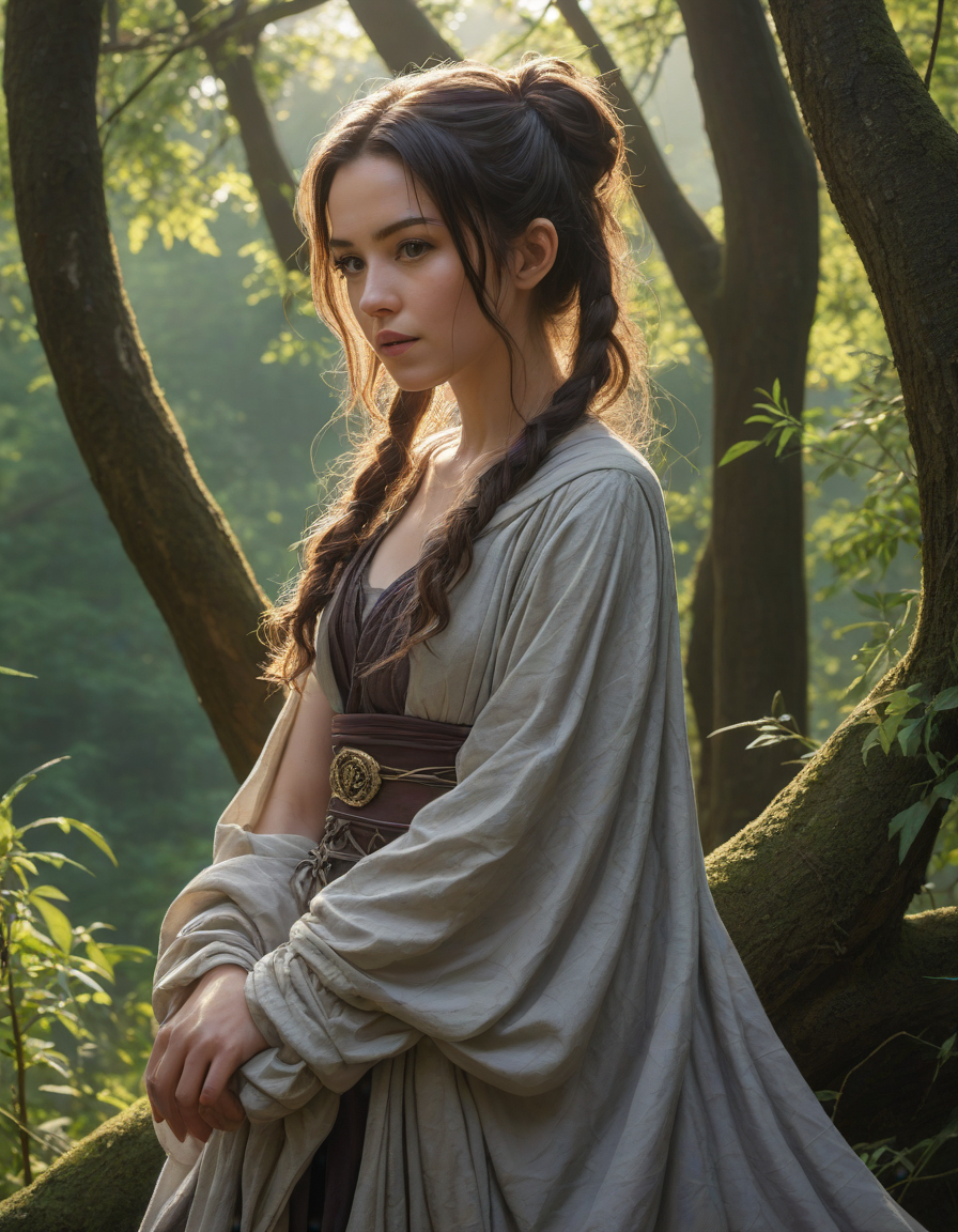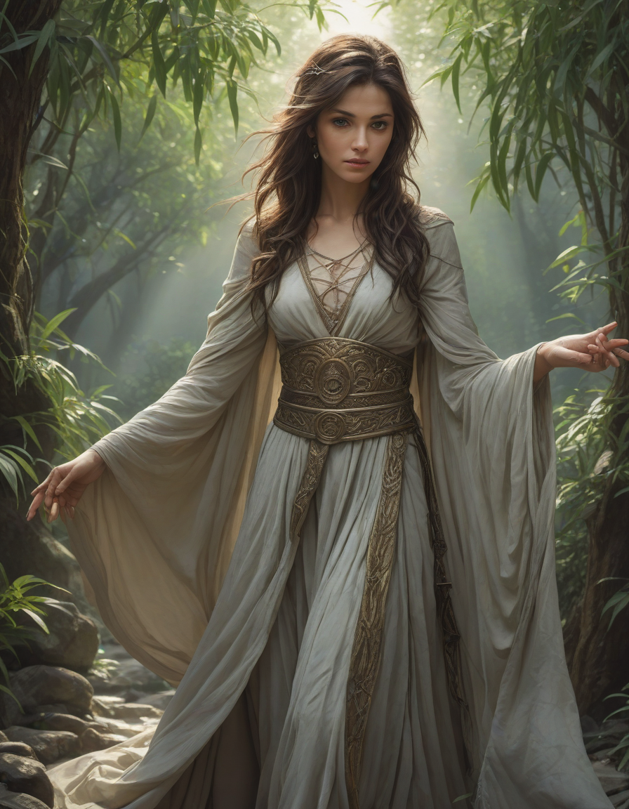 complex, Rays of hope streaming in, anime, Grunting for control, cladorned in rugged plate mail, elegantly draped rich crinkled robes swirling gracefully, willow silhouette