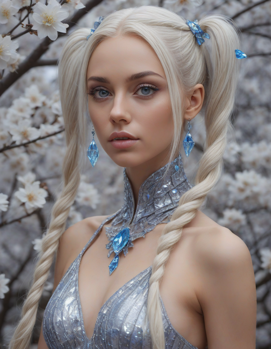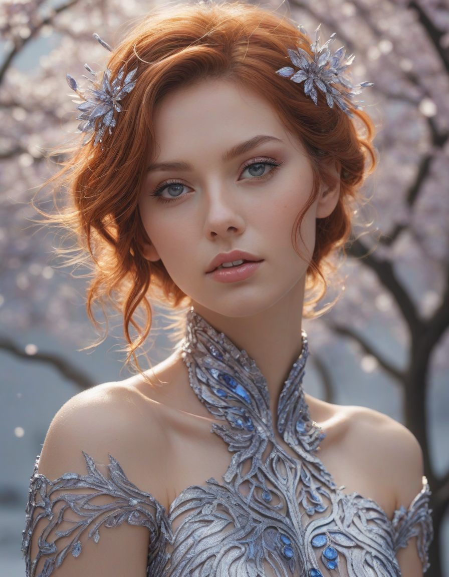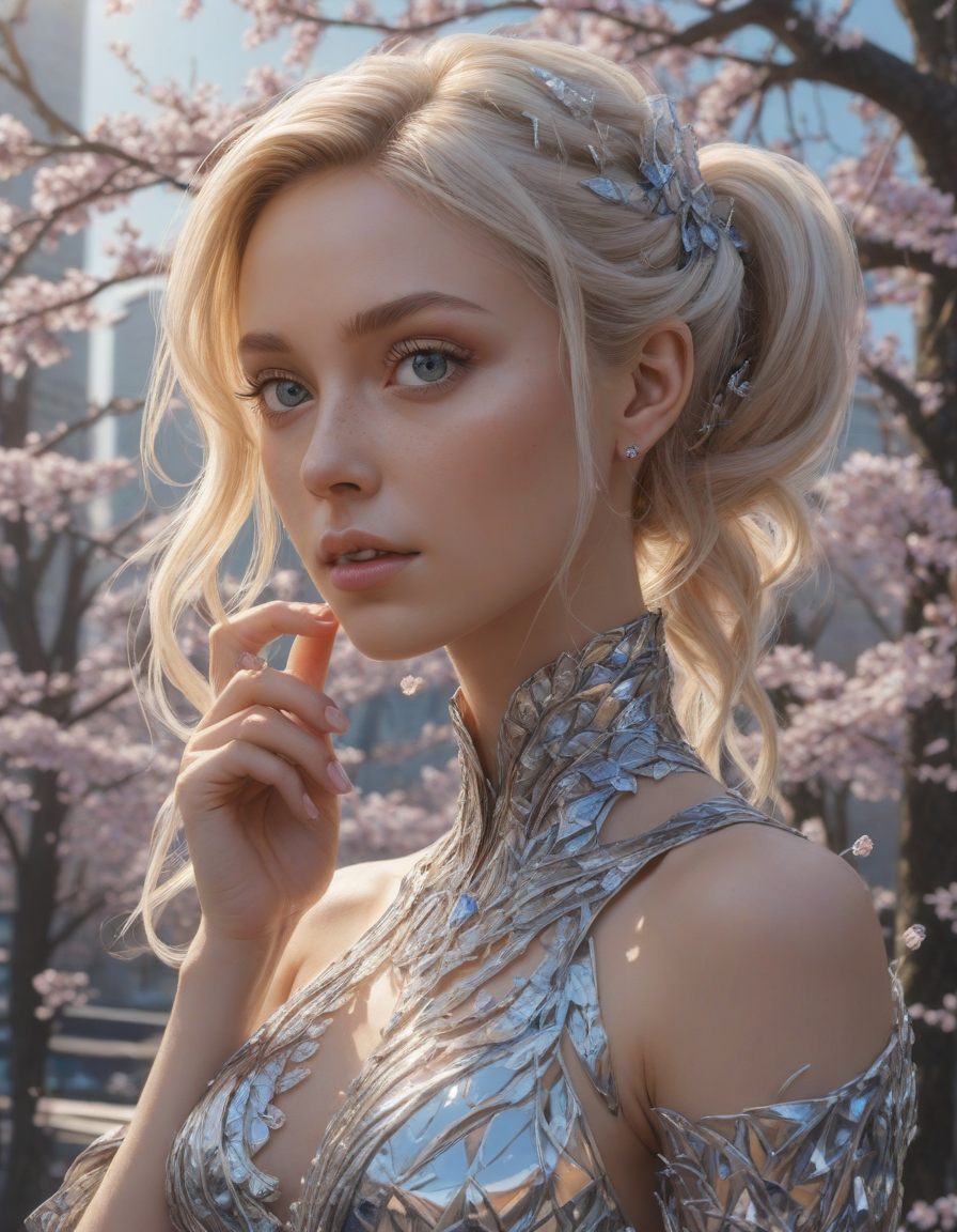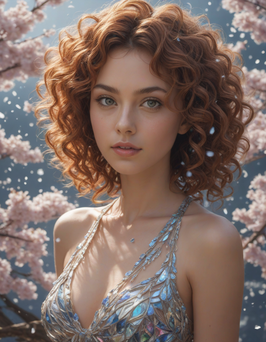 extremely detailed, in love, crystal sculpture, a rainbow exploding with joy, lost in a trance, eyes glued to the horizon, happy, Chiseled jawline, Glistening sapphire tail with each scale glimmering in the sunlight, active, mathematics, Eyes glint with mischief, Blossoming cherry trees, petals falling like snow, comfy blanket wrapped tight, Shimmering splendor