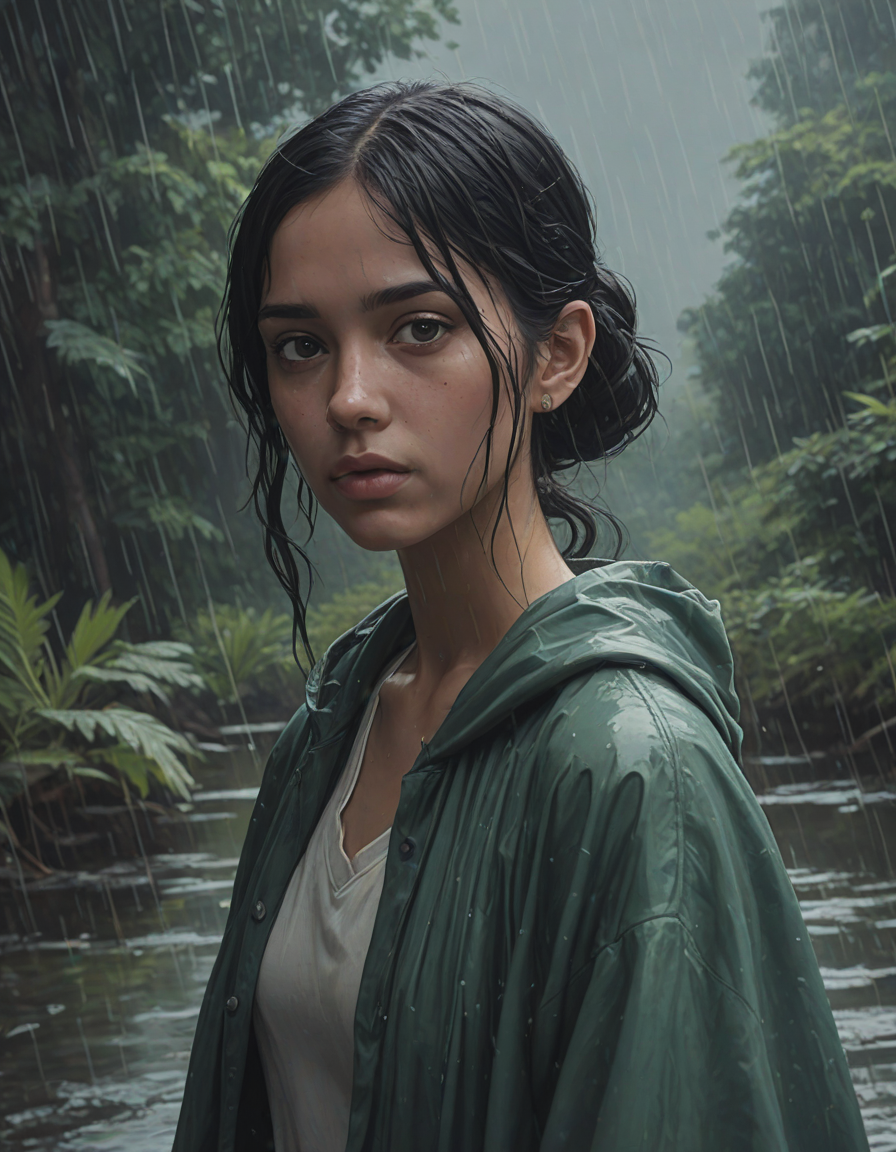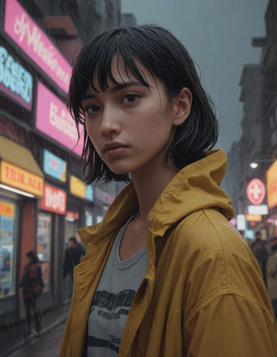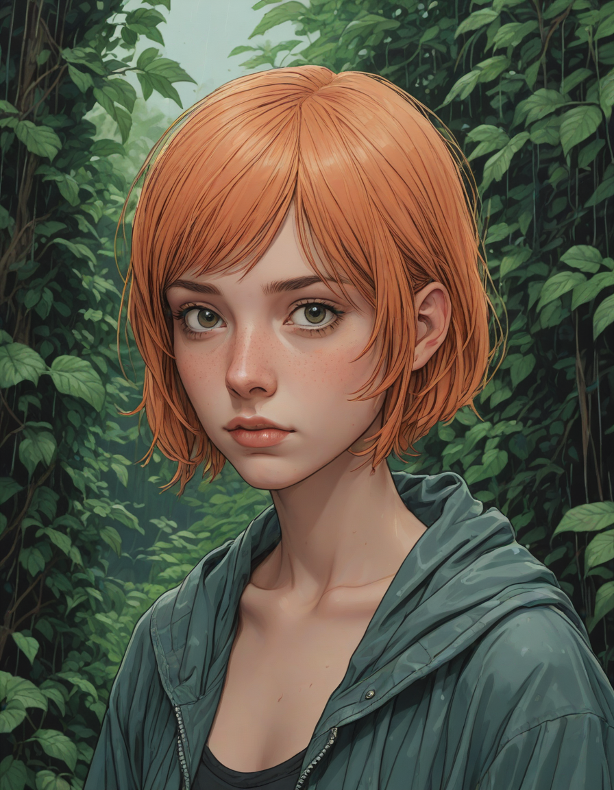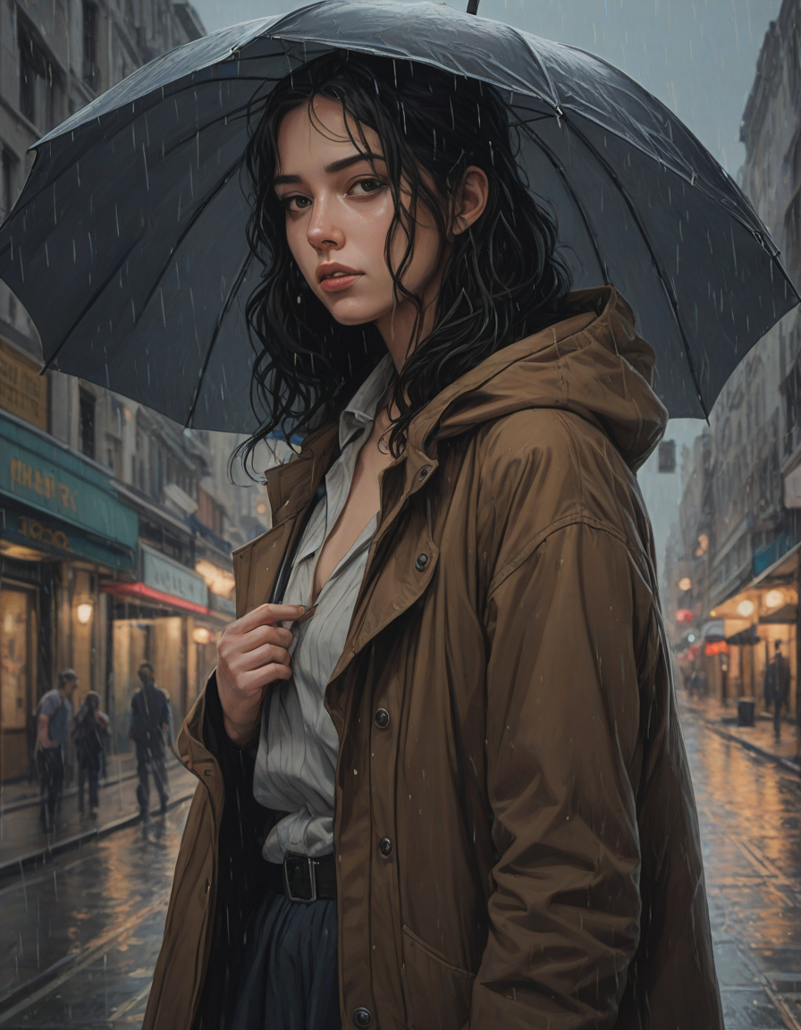 Bittersweet indie graphic novel aesthetic, caught in a downpour, Cloaked shadow
