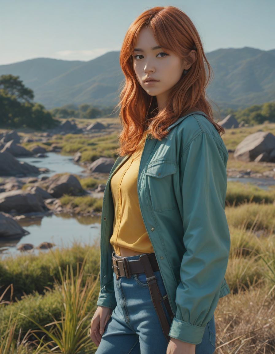 intense, rolling hills, Low-Key Lighting, Women in vibrant Anime costumes, western, newspaper editorial photography, low poly count, soft glow, medium telephoto lens, crisp Blu-ray remaster