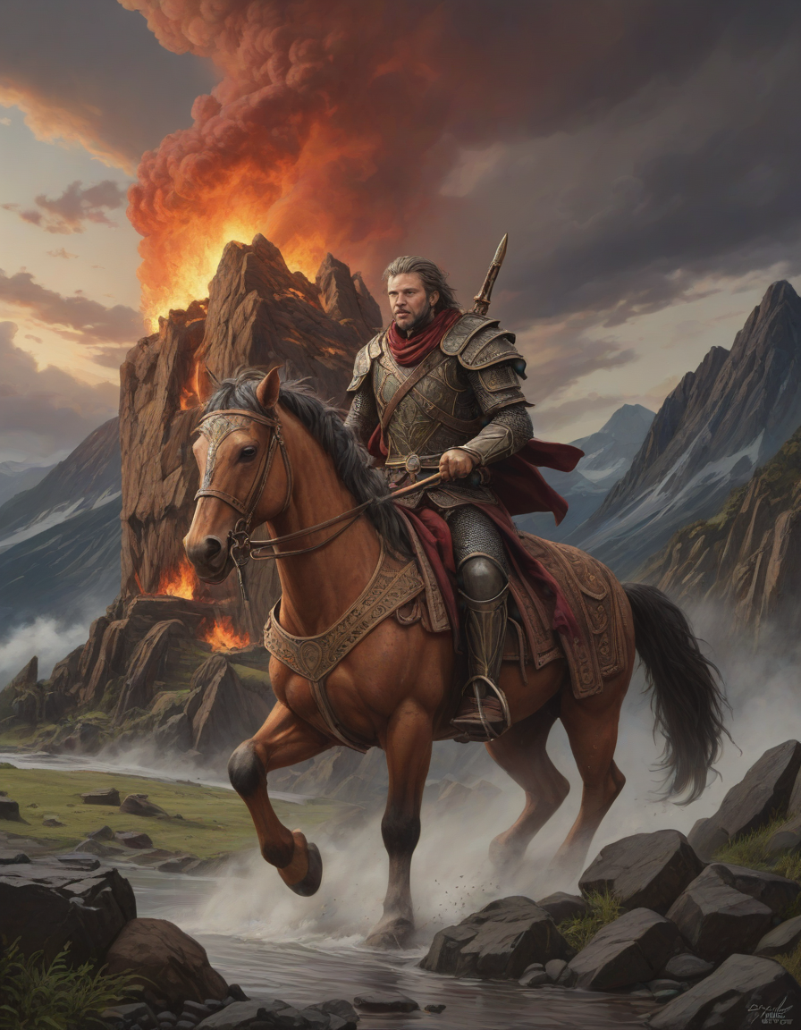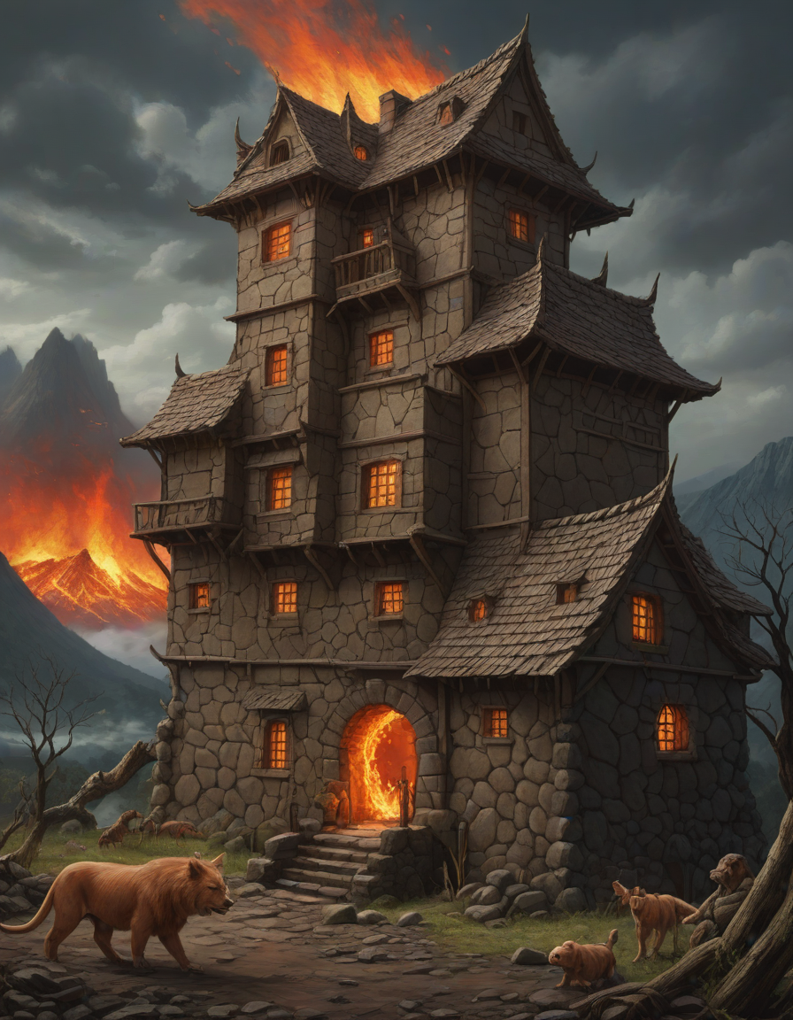 lionhearted knight, gingerbread house, deep sleep, van gogh, Muddy, Fiery volcanic eruption