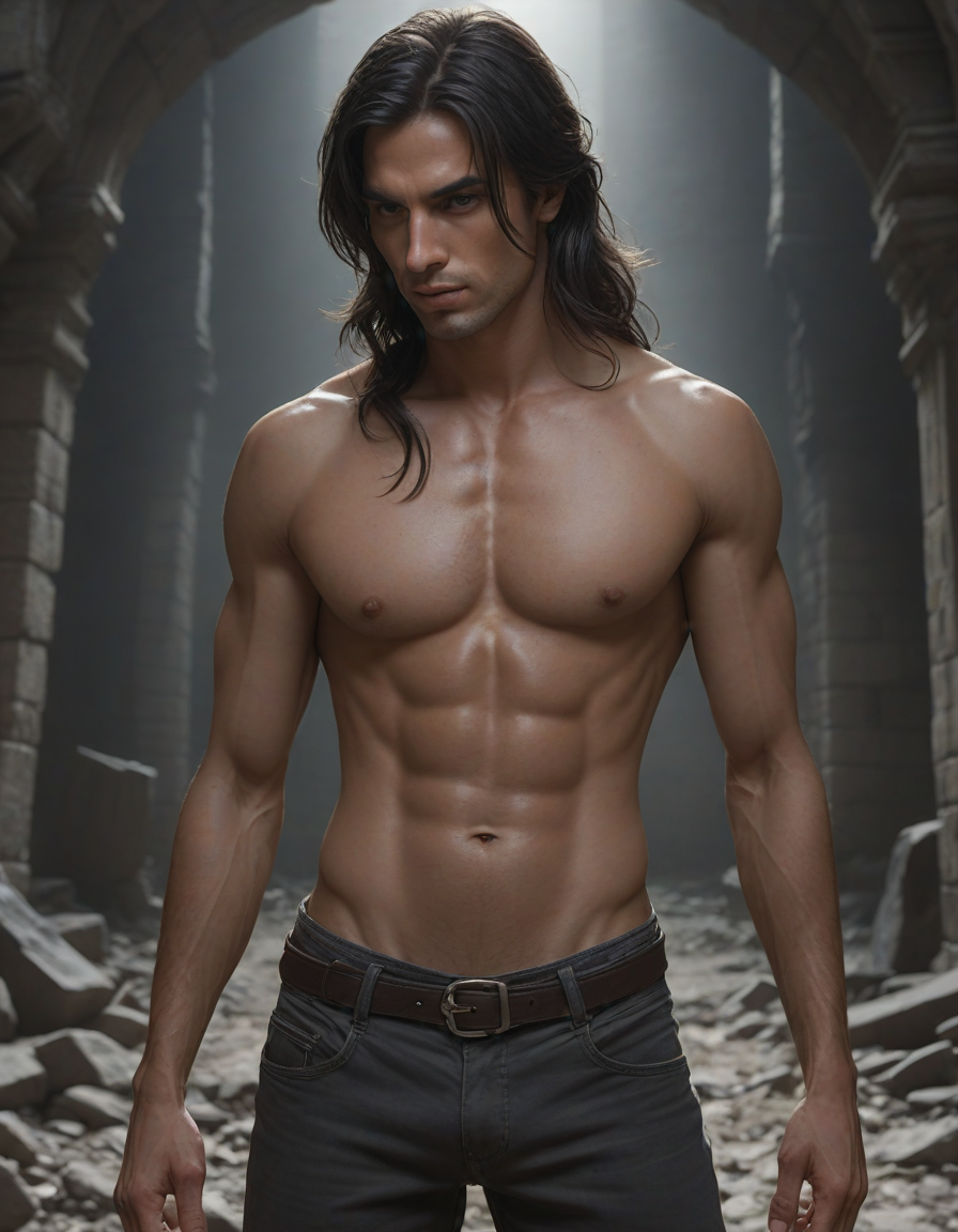 Rock-hard abs glistening, hugs embracing tightly, long hair