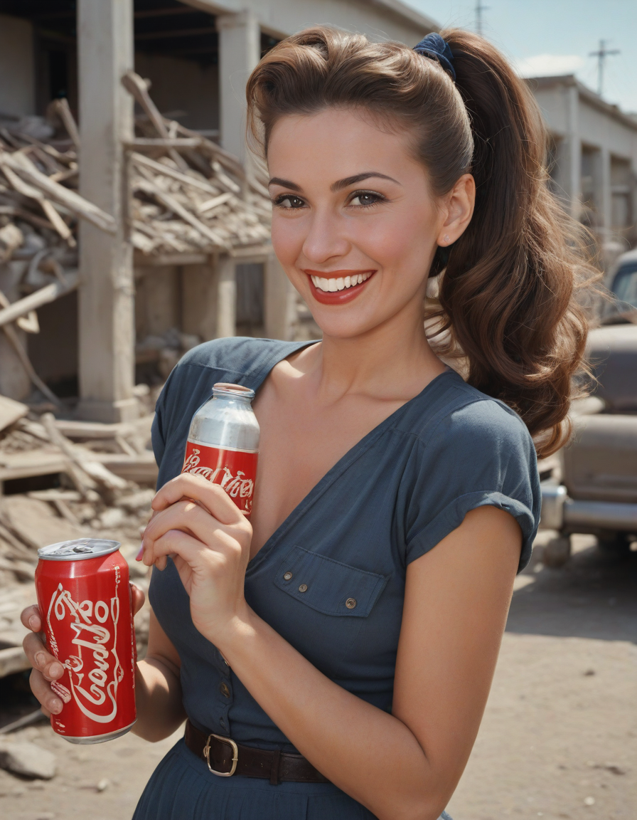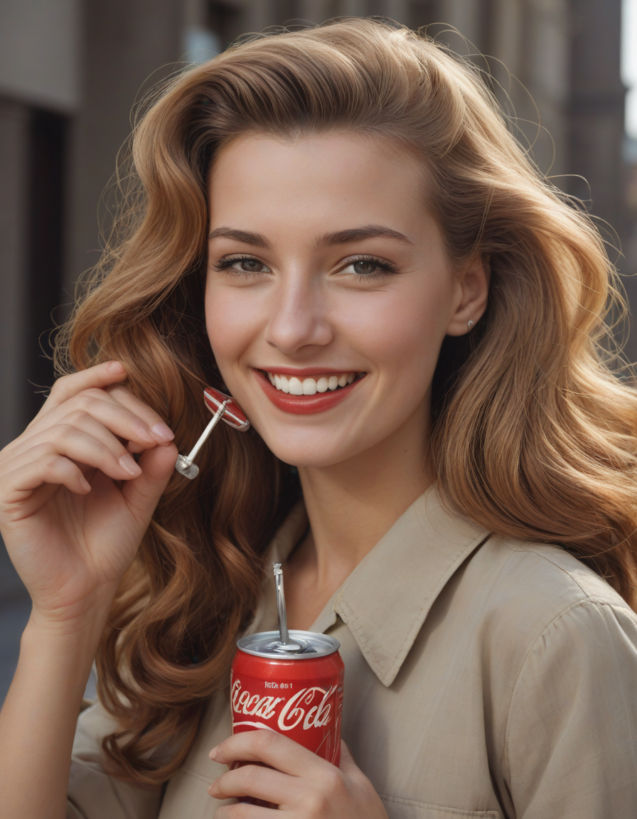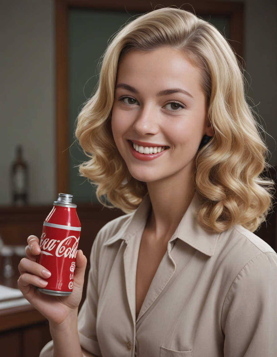 smiling faces, drinking a coke in the 1950s, flowing hair, successful