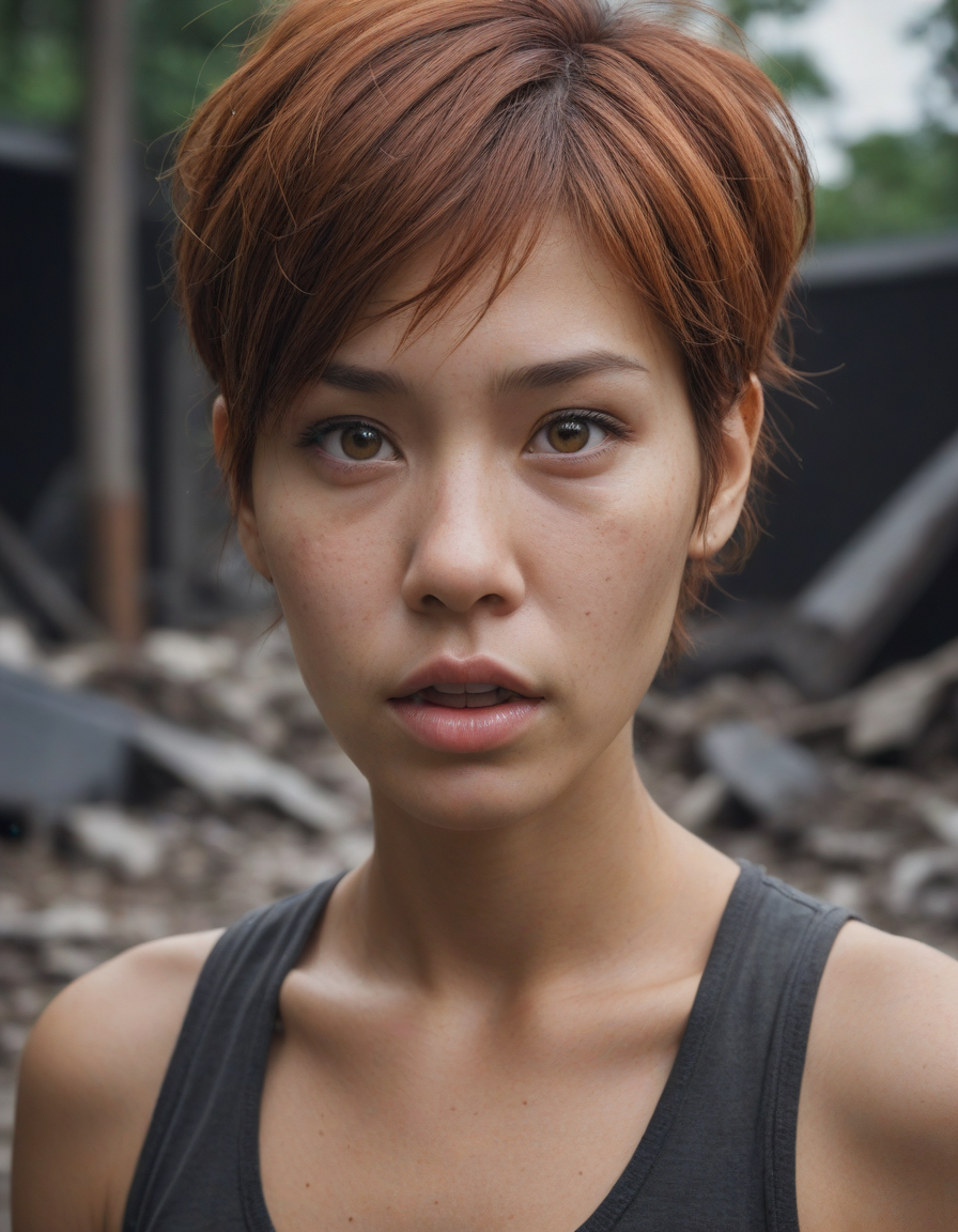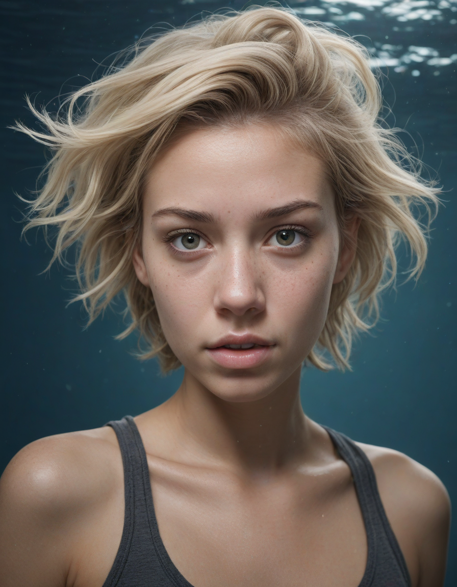 Glistening grunge, photorealistic portrait, excited, Bizarrely, preoccupied, intense longing