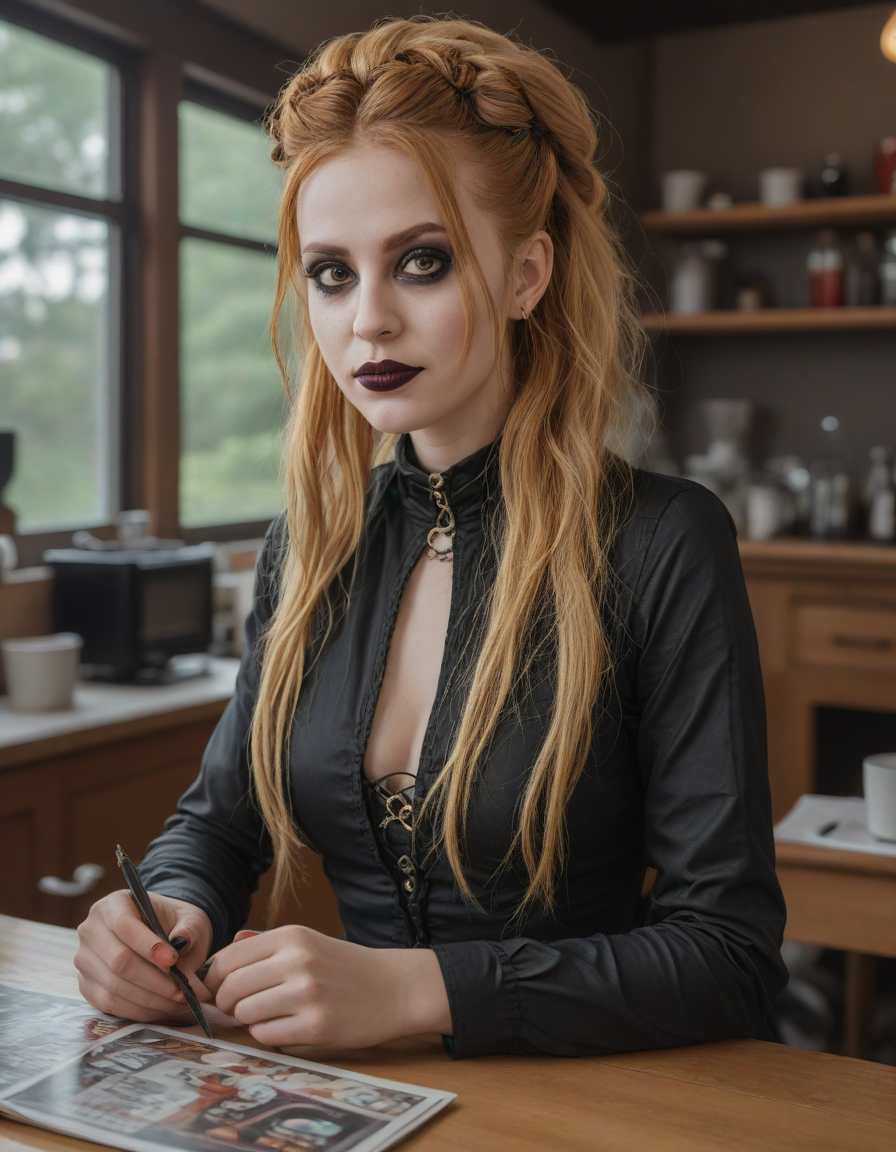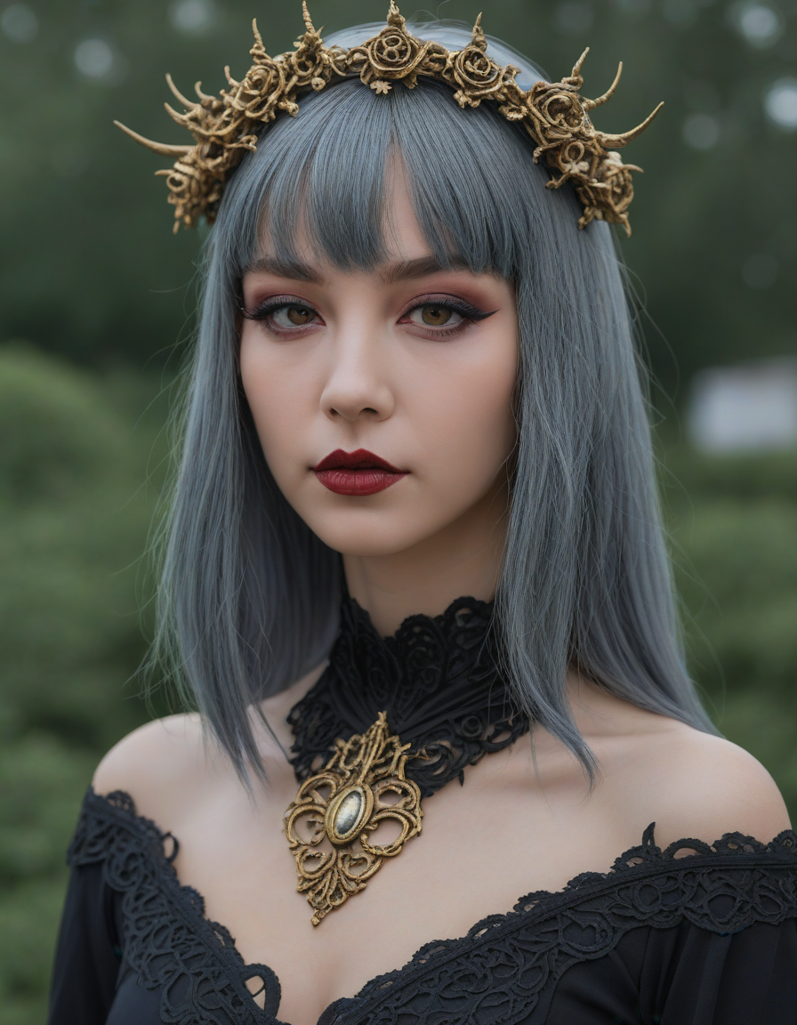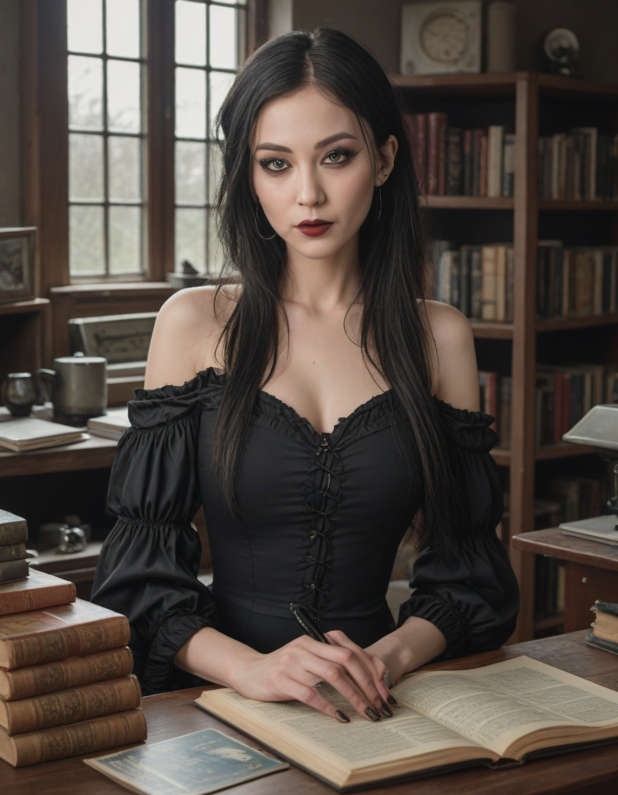 Gothic beauty with dark makeup... (3 loras merged)