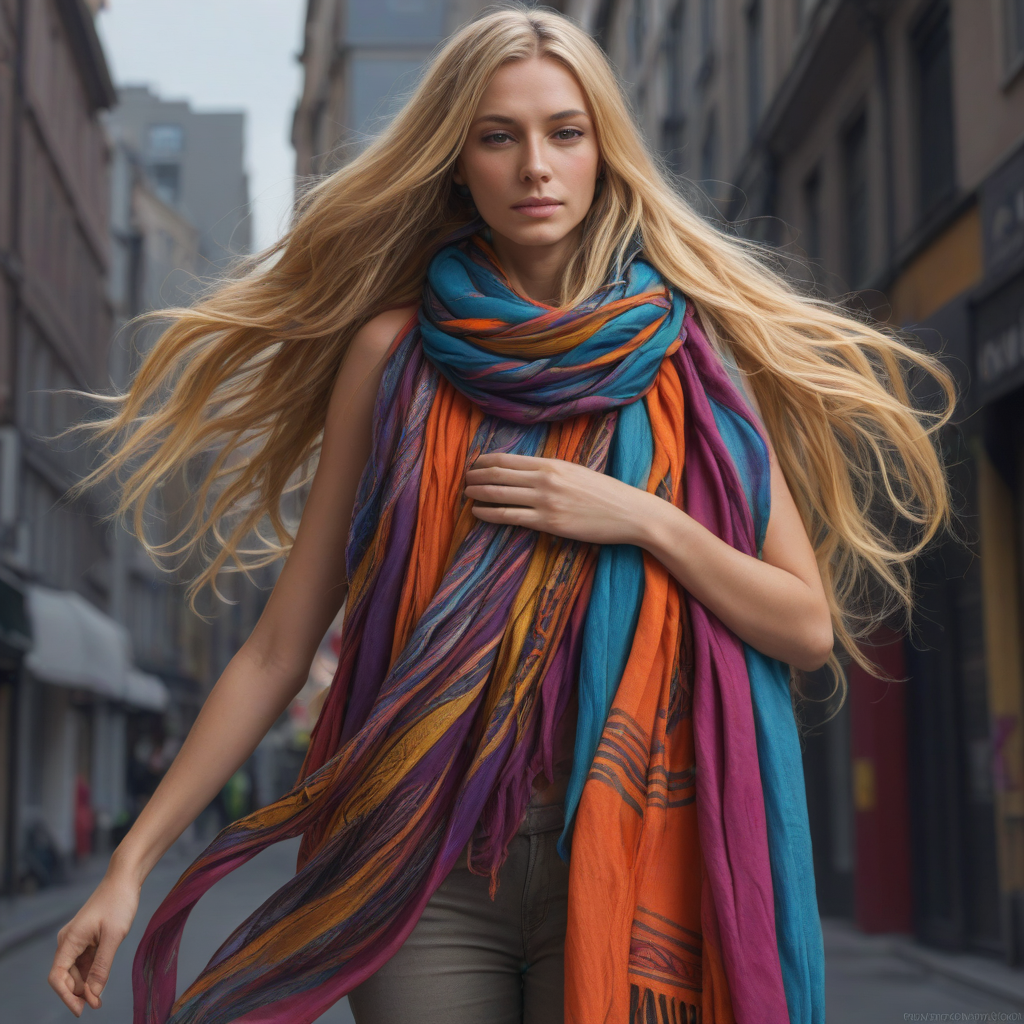 pop art, a woman with long flowing hair draped over one shoulder and a fasciantingly vibrant scarf wrapped around her neck, pixelated character, you feel your pulse quicken, overgown foliage, shattered glass
