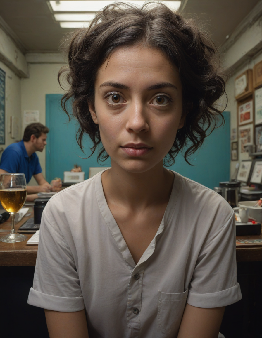 terrifying, Chiaroscuro, Extreme fish eye, Royal splendor, bursting with happiness, unparalleled masterpiece, lost in deep thought, looking at viewer