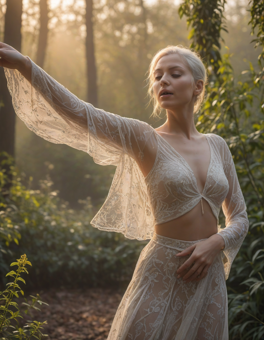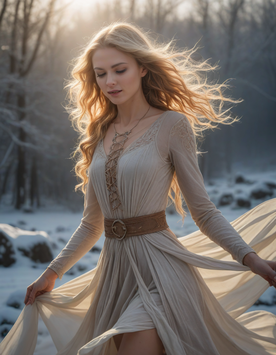 Daybreak frost glinting in morning rays, feeling pure ecstasy, Swift, agile movements of a dancer in perfect harmony, winking, snickering