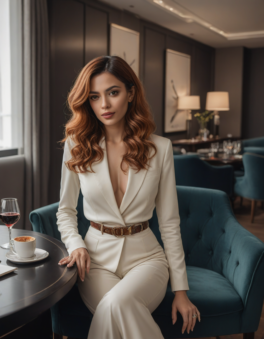 dressed impeccably, sipping fine wine in a chic lounge, diablo