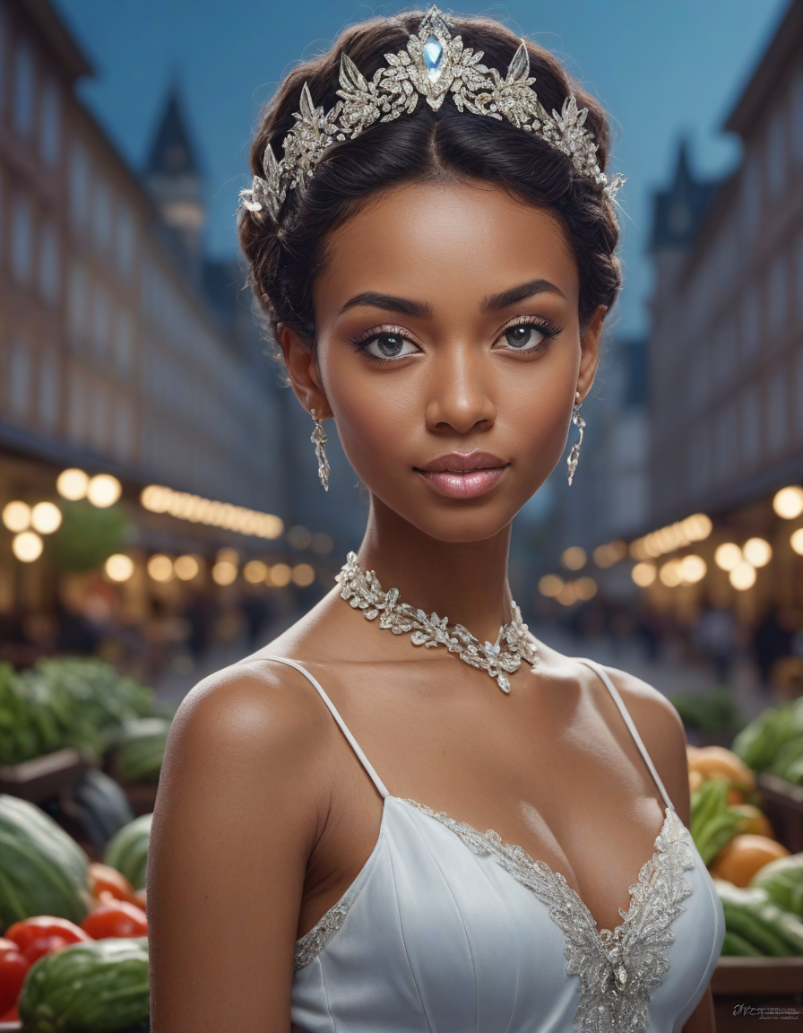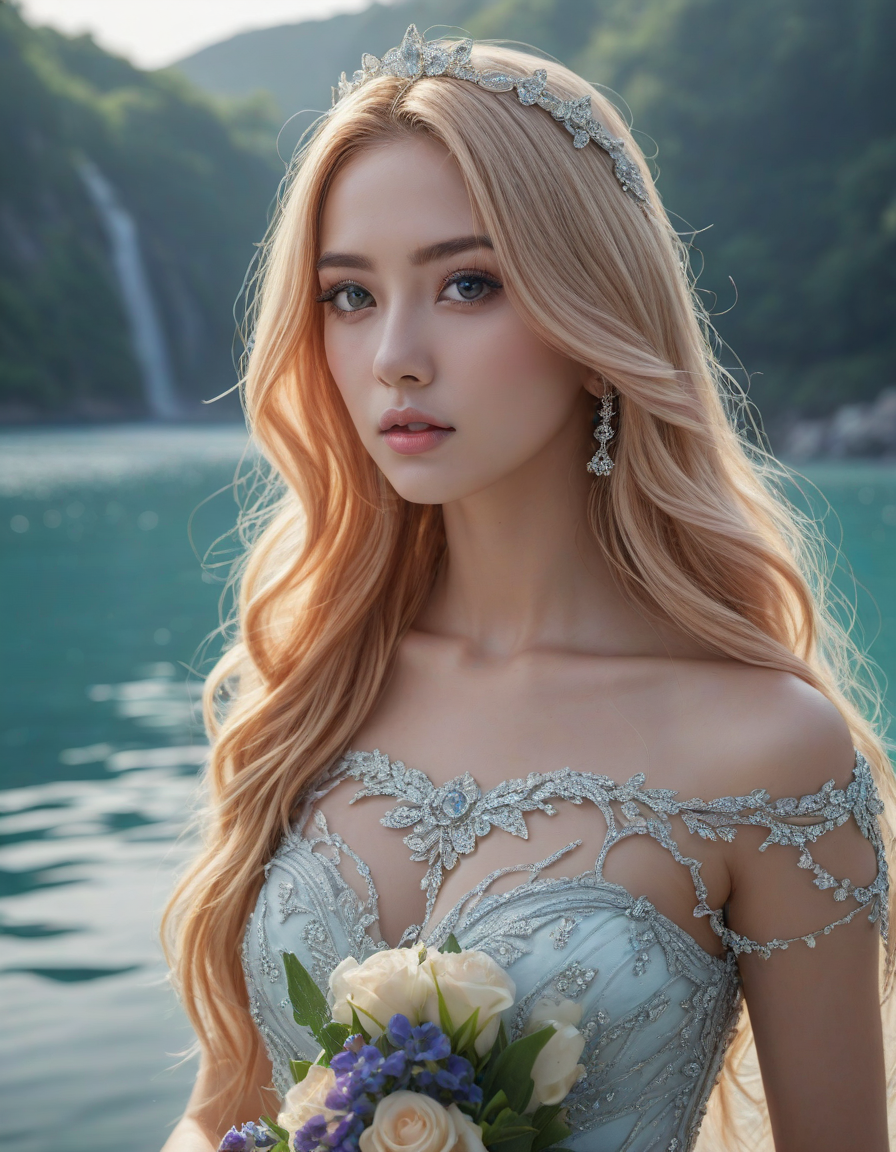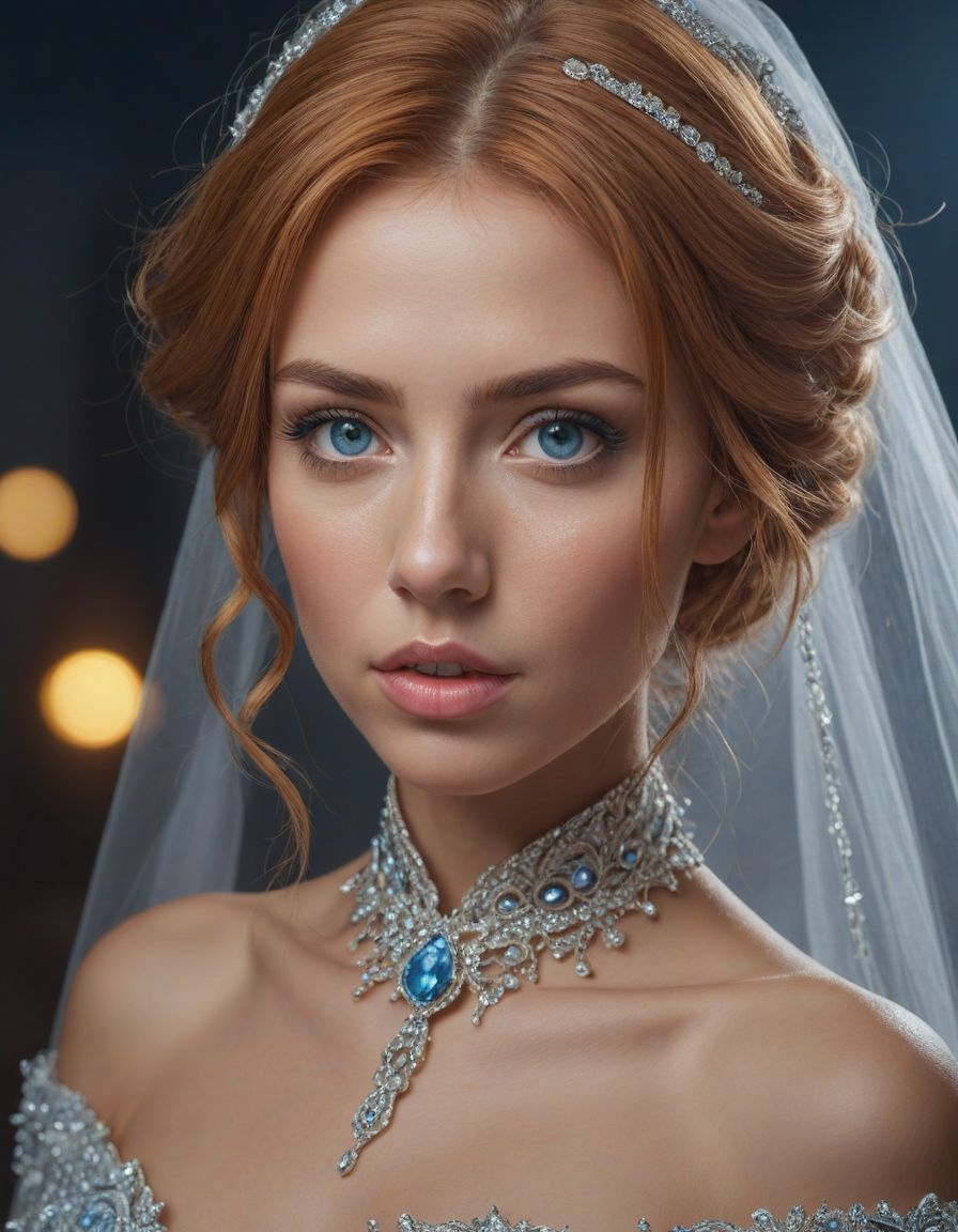 Sparkling diamond, evil bride, Surrounded by gleaming lights, cutting vegetables, light blue colored iris pigment, light blue colored eyes, blue-iris-color, blue-eye-color,, sudden power, Glorious