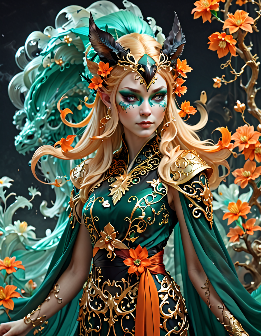 Elven, wearing elegant dress, ... (3 loras merged)