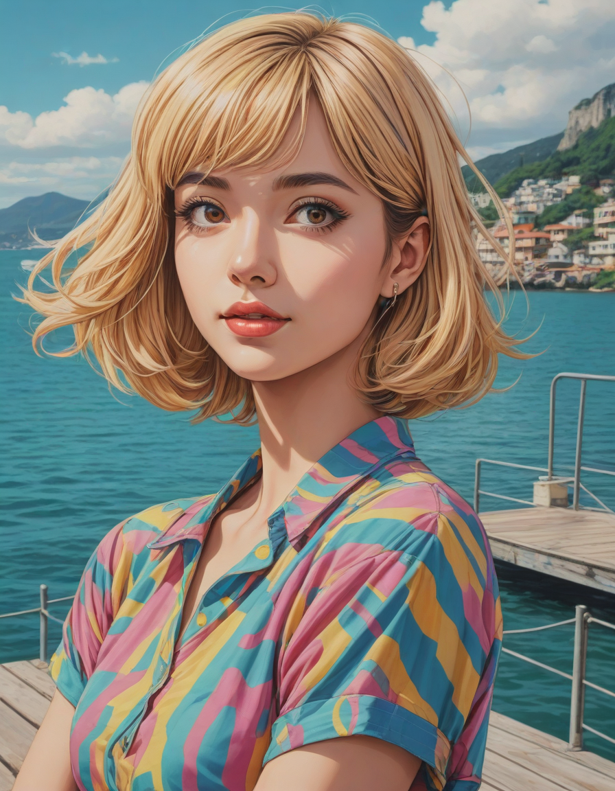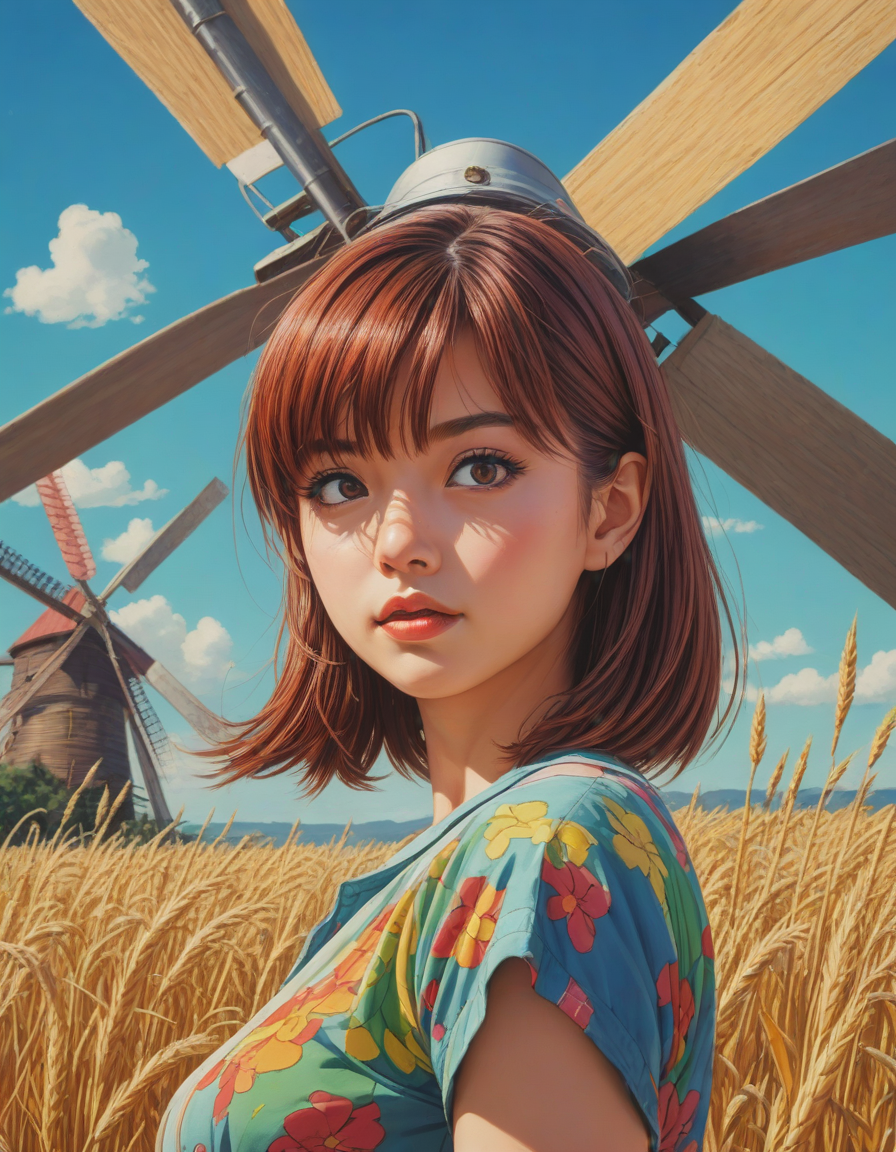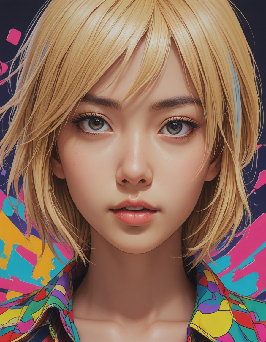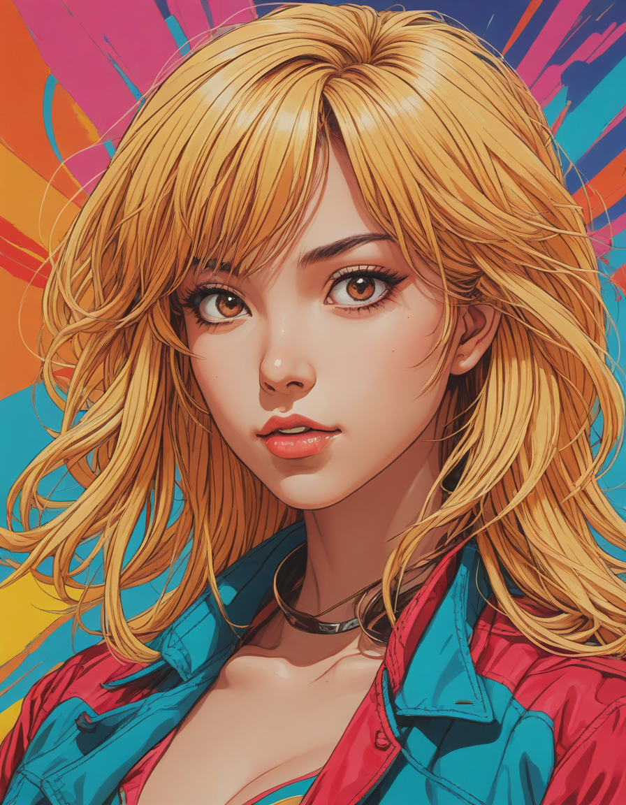 a head tilting, a question asked without words, vibrant, colorful pop art piece, 90s anime
