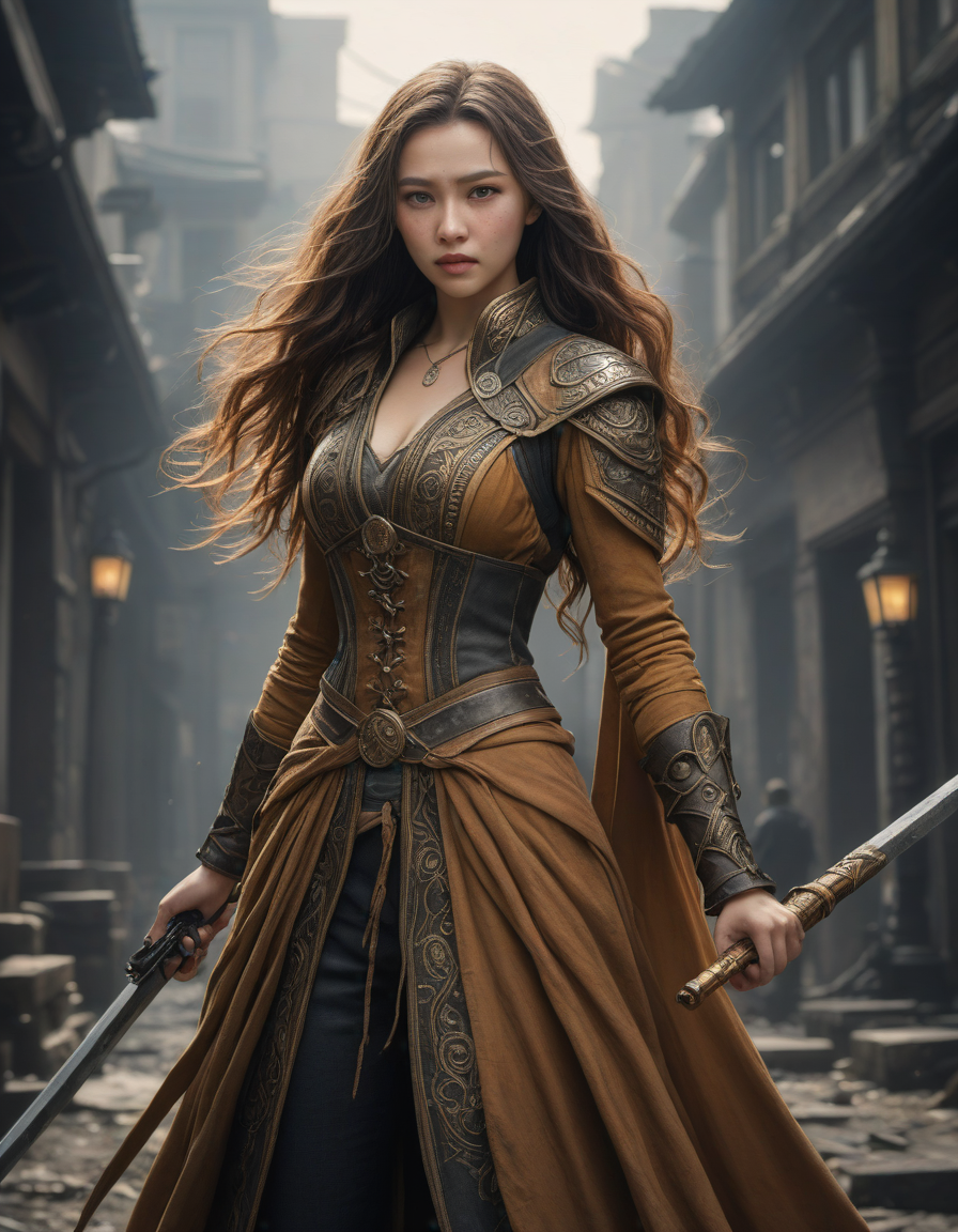 rich, detailed open-world environment, weilding a one-handed weapon in both hands, one-handed weapon, weapon, , appalled