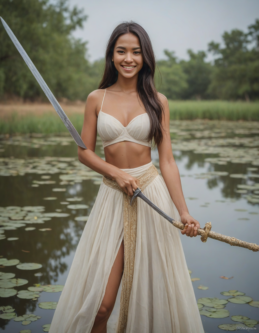 model, holding a sword, cheesy... (4 loras merged)