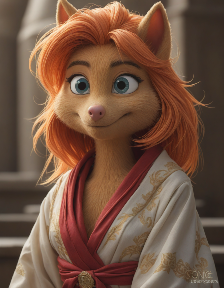 muppet, beaming with pride, elegantly draped rich crinkled robes swirling gracefully, a tender stare, sonic the hedgehog
