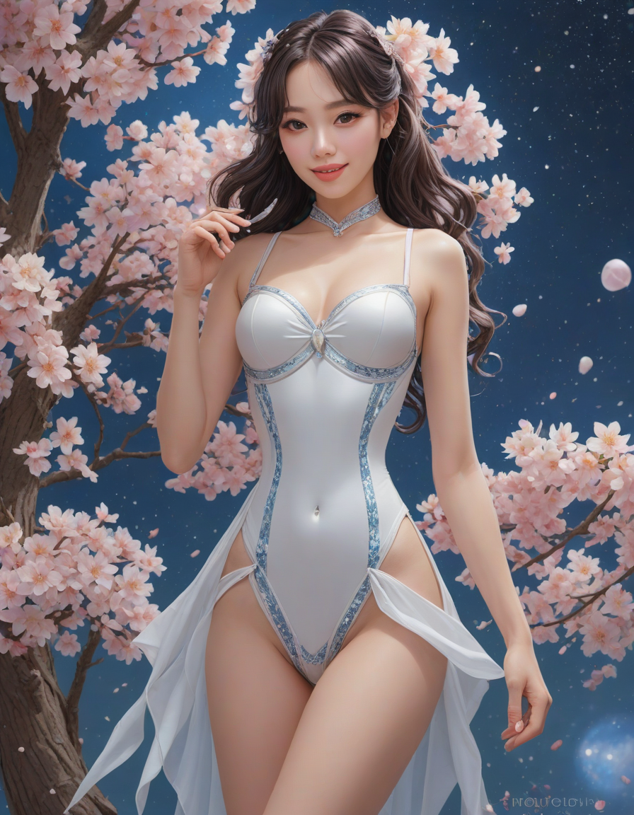 Giant cherry blossom, well-groomed, energetic person, A sparkling, sapphire-eyed swordswoman who dances gracefully, Shimmering splendor, meticulous attention to details, Strapless Underwire Bustier Camisole, Strapless, underwire support, bustier design, camisole silhouette, form-fitting, elongated torso, sculpting panels, boned structure, smoothing fabric, back closure, low back design, seamless edges, contour cups, versatile wear, hidden hooks, silicone grippers, layered construction, cinched waist, reinforced sides, luxury textiles, precision fit, sleek profile, minimalist aesthetic, extended length, body-enhancing shape, adjustable fit, elegant detailing, integrated support, smooth lining, figure-hugging, gleaming smile, lips pressed, pixelated character, Raising a glass of bubbling elixir