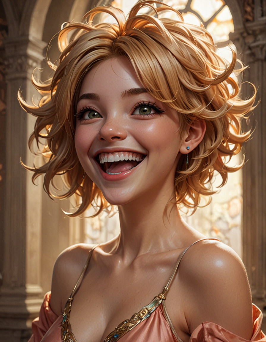 expressionless blank stare, pursed lips, furrowed brow→euphoric laughter, eyes crinkled shut, mouth wide open