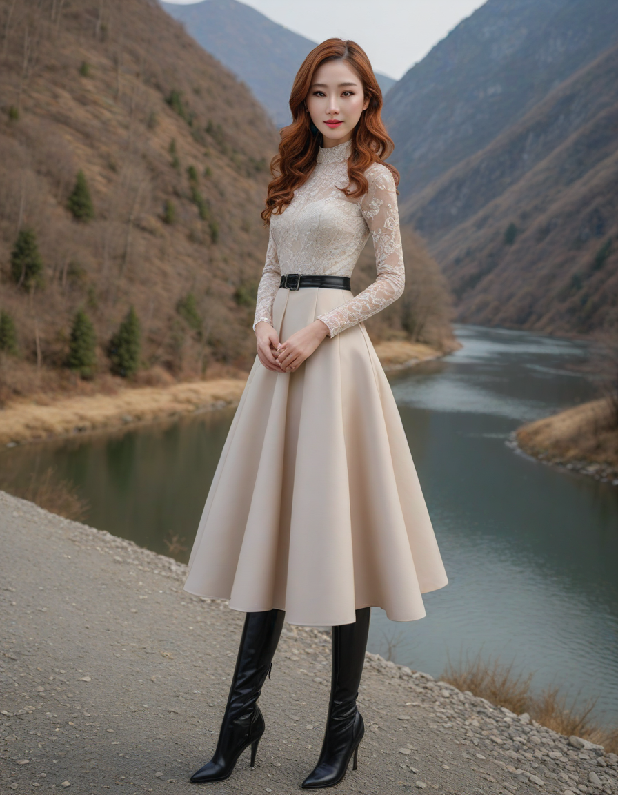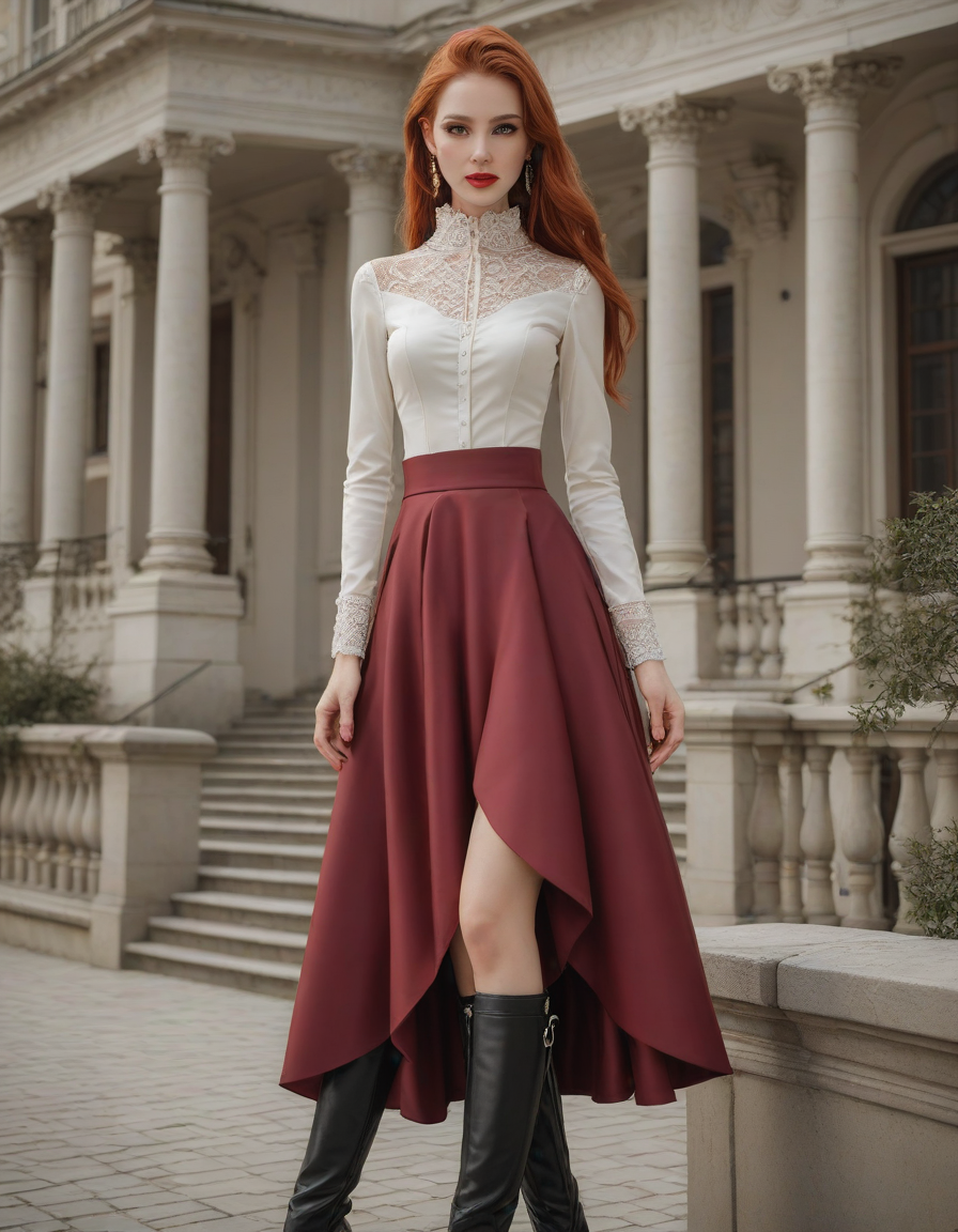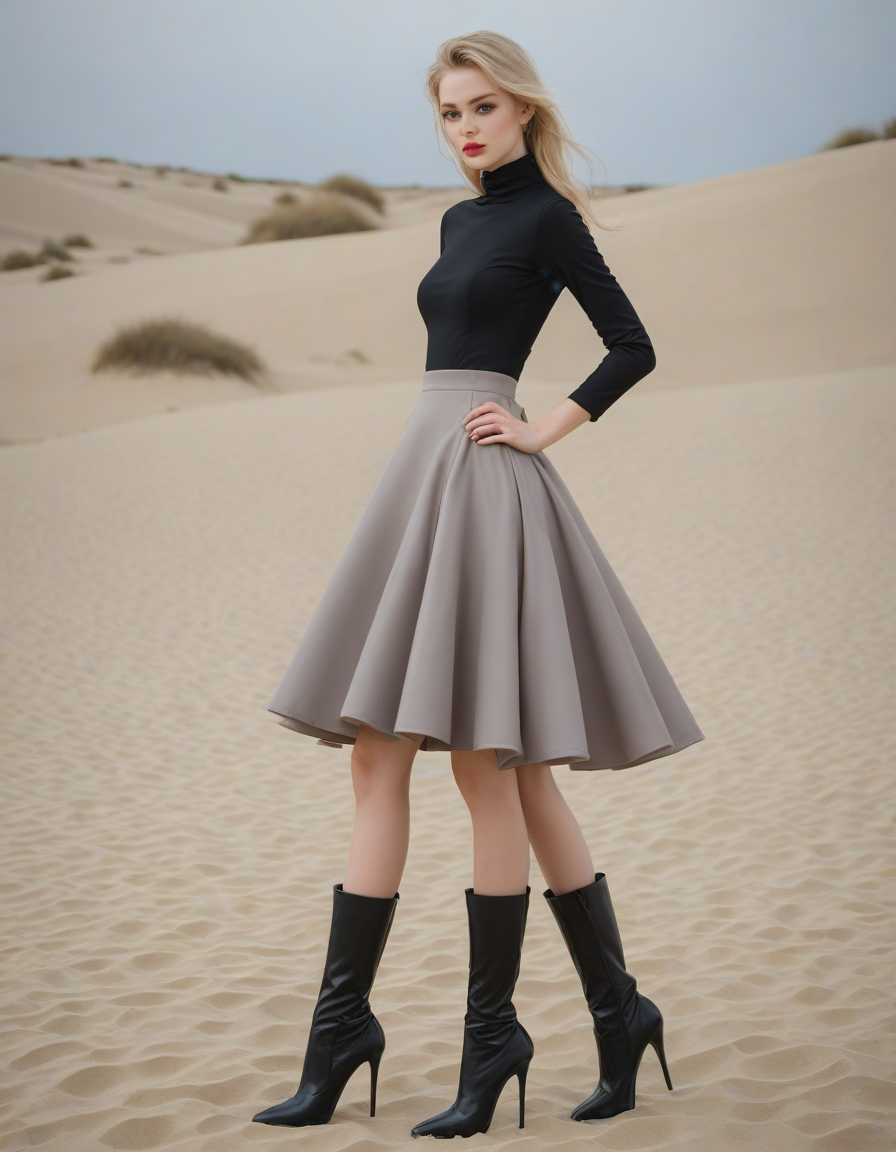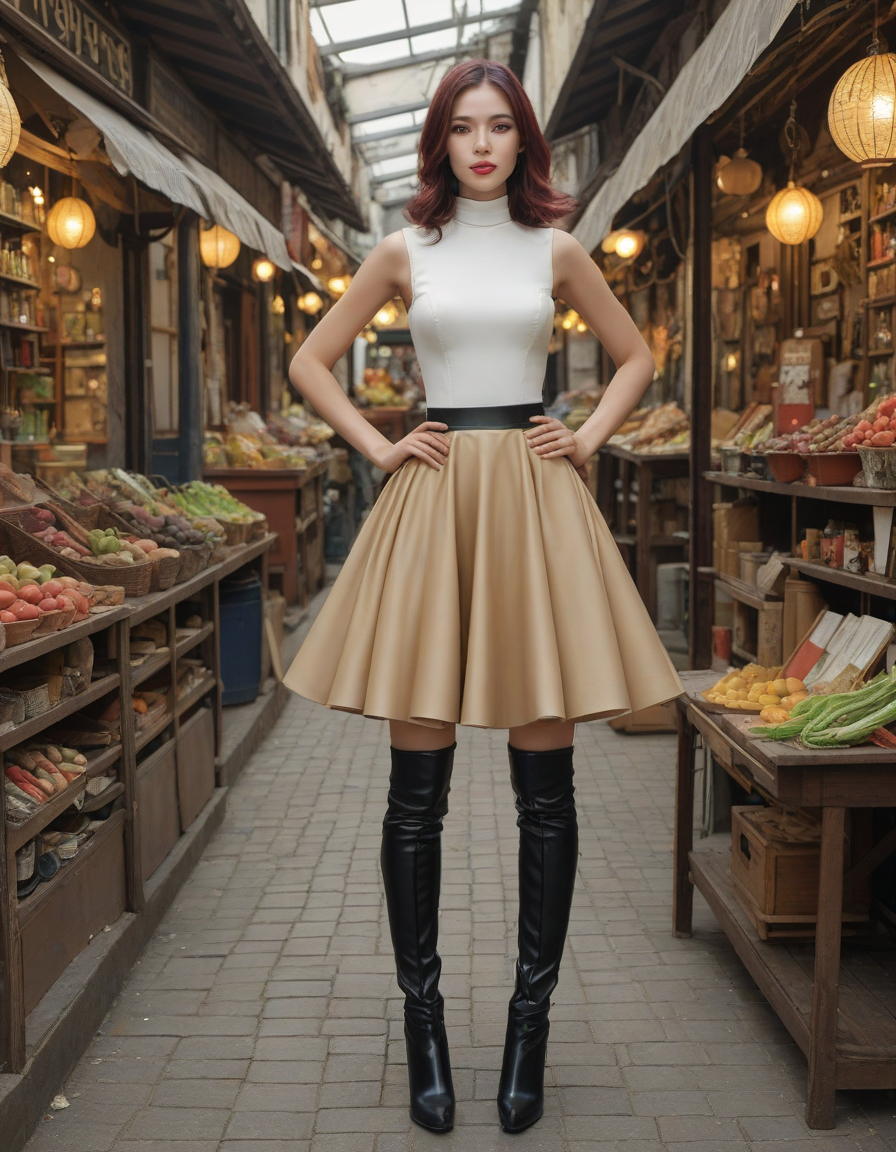 elegant, high waist tight overknee stiletto boots, Wide Skirt, wide ballgown hem, a line skirt, petticoat skirt,