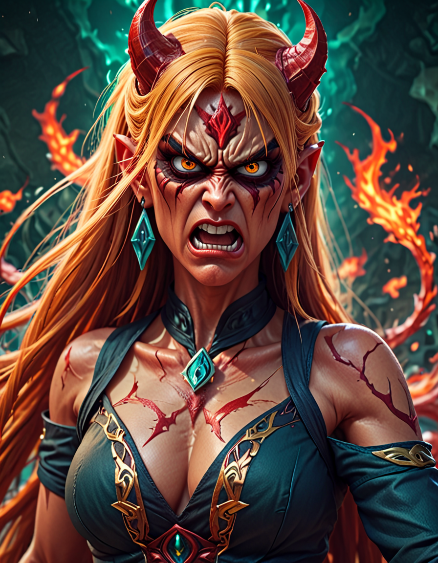 demon.v2, angry, dynamic pose,... (3 loras merged)