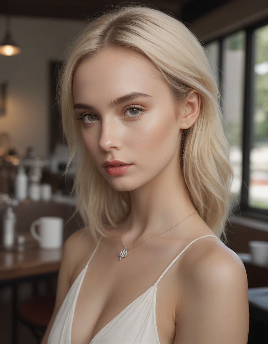 Sparkling diamond, absurdly beautiful, high-arched eyebrows, pronounced cheekbones, full lips, narrow facial structure, small chin, pointed nose tip, deep-set eyes, prominent jawline, smooth forehead, elongated face shape, subtle eye creases, thin nose bridge, voluminous cheek appearance, defined lip contour, sculpted facial silhouette, soft nasolabial folds, high forehead, delicate ear shape, refined jaw angle, sleek facial contour, Caucasian American Girl, Bimbo Facial Features, Barbie-esque Facial Features, british, pale, 18yo, 18 year old, young, youthful,