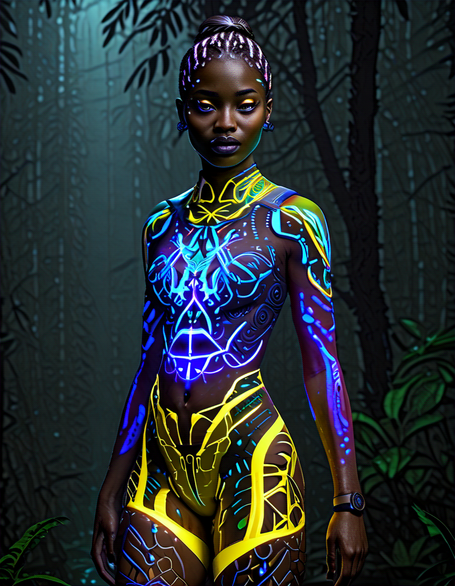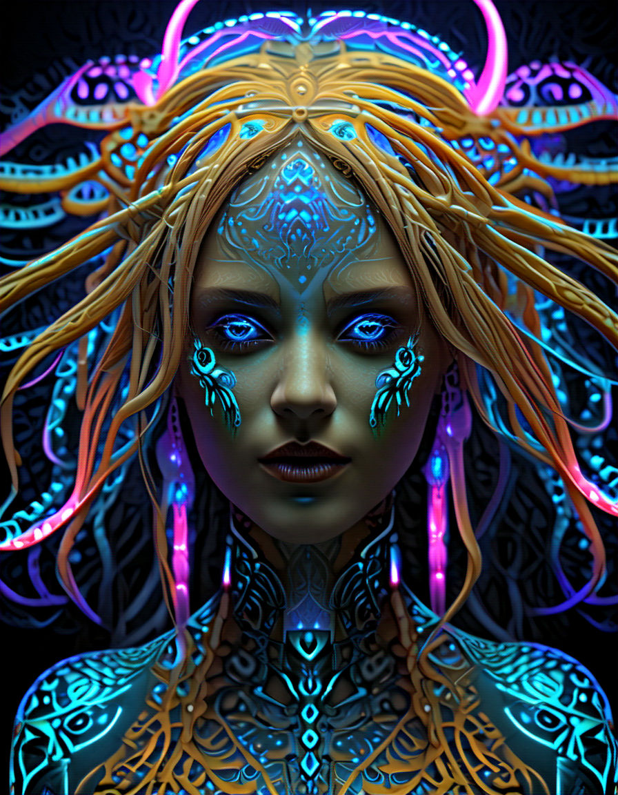 intricate tattoos, bioluminesc... (3 loras merged)