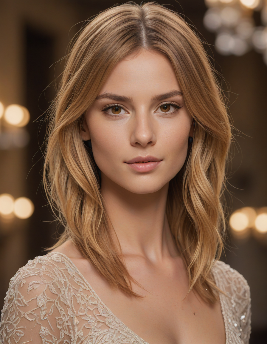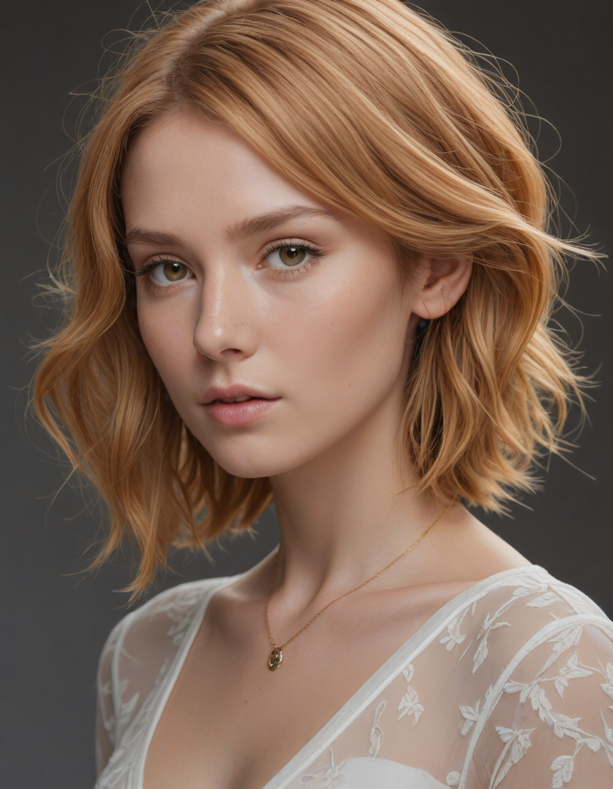 Sofia from Australia, medium shoulder-length ginger parted in the side with blond streaks, brown eyes, curved nose, thick lips, dimples, perfect teeth, teasing look, freckles, Swift, agile movements of a dancer in perfect harmony, yellow cat-like eyes, sonic the hedgehog, celestial, Sculpted cheekbones