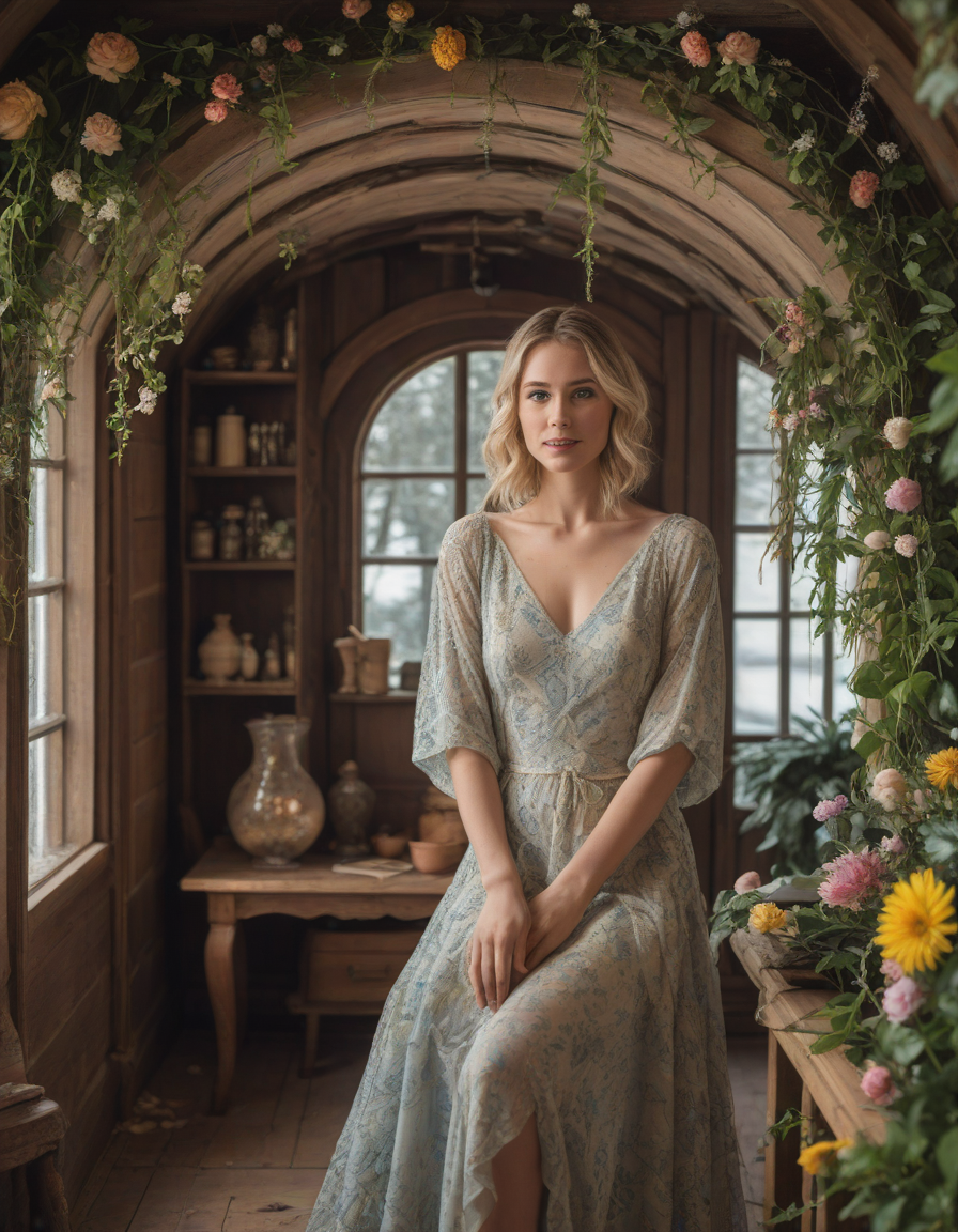 abounding with wildflowers, glowing ice tunnel, designer vintage wear, cozy in a cabin with a roaring fireplace while it snows outside, Unusually vivid