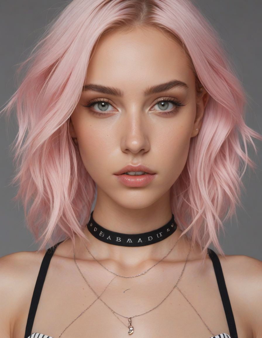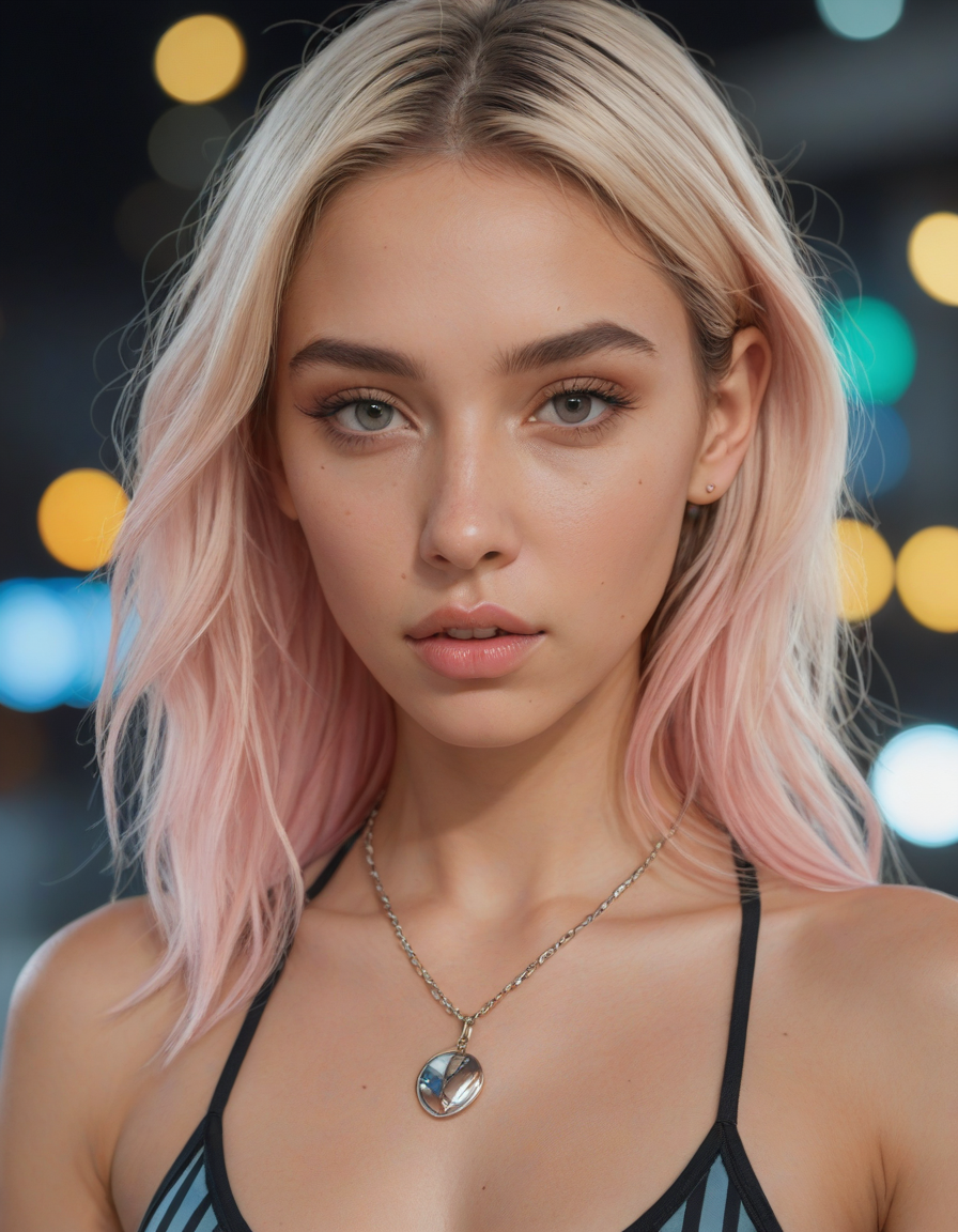 wearing sleeveless leotard, wearing one peice clothing, leotard, sleeveless, , (ab lines:1.5),raytracing,Oiled skin,Glistening skin,Oiled skin,reflective skin,Glossy skin,metal skin,metallic luster,Oiled clothes,skin tight,covered nipples,covered nave, Visualize a photorealistic portrayal of an 18-year-old high school senior girl, epitomizing the e-girl aesthetic with a blend of internet culture's vibrancy and personal audacity. Clad in an oversized striped shirt under a black graphic t-shirt dress, her style is a testament to e-girl fashion's layered intricacy, complemented by fishnet tights and chunky boots. Her makeup features dramatic winged eyeliner, neon eyeshadow, and dark lipstick, with blush bringing her face to life. Accessories like silver chains and a heart pendant choker, along with pastel or neon hair streaks, enhance her playful rebellion. Standing hands-on-hips, she exudes confidence and individuality against a backdrop suggestive of e-girl life, with neon signs and string lights. This scene captures her bold identity and expressive spirit at this pivotal moment., oval face shape, almond-shaped eyes, voluminous lashes, slightly arched eyebrows, narrow nasal bridge, rounded nose tip, symmetrical nostrils, full lips, pronounced cupid's bow, slightly fuller lower lip, defined cheekbones, rounded chin, smooth complexion, softly contoured jawline, balanced facial proportions, symmetrical features, gently curved eyelids, soft brow ridge, harmonious cheek to jawline transition, subtle philtrum, delicate ear lobes, straight blonde hair, clear skin, hooded eyelids, light pink lip color, slightly pouty expression, casual pose with hand on face, slight head tilt, indoor lighting, Light blue irises, Medium-thickness eyebrows, Softly angled eyebrows, A hint of freckles across the nose and cheeks, Natural makeup, Gentle frown lines between the eyebrows, Soft nasolabial folds, Smooth forehead, Subtle dimple on the chin, Clear facial contour without distinct shadows, Even skin tone with a hint of natural pink undertones, Slightly rosy cheeks, Tapered jawline, Fine hair texture with gentle waves, Youthful appearance with soft facial features, excessive cleavage, low neckline, revealing chest, revealing cleavage, cleavage-baring, revealing, excessively revealing, very revealing, lowcut, lowrise, , provocative clothing, slutty clothing, skimpy clothing, revealing clothing, seductive clothing, coquettish clothing, coquettish, seductive, taboo, sheer clothing,