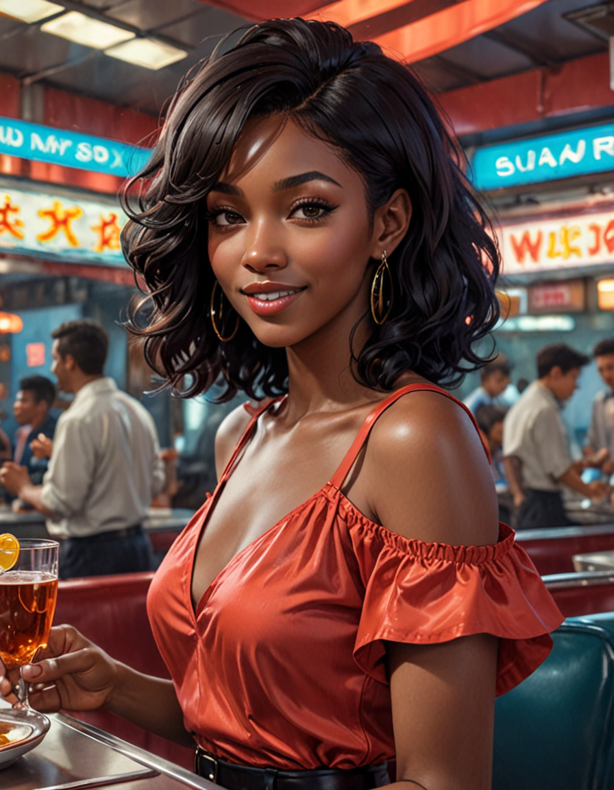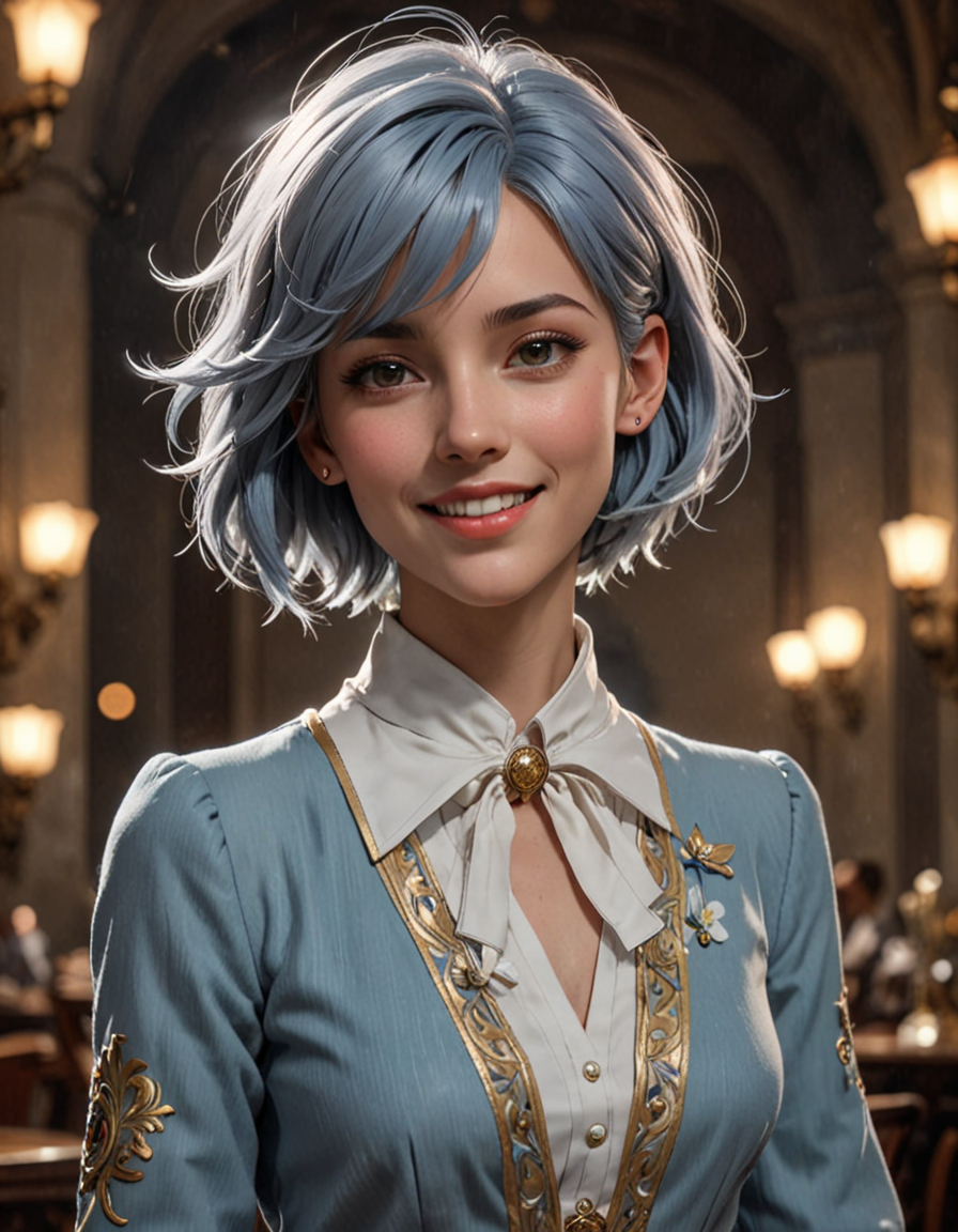 dramatic lighting, smiling che...