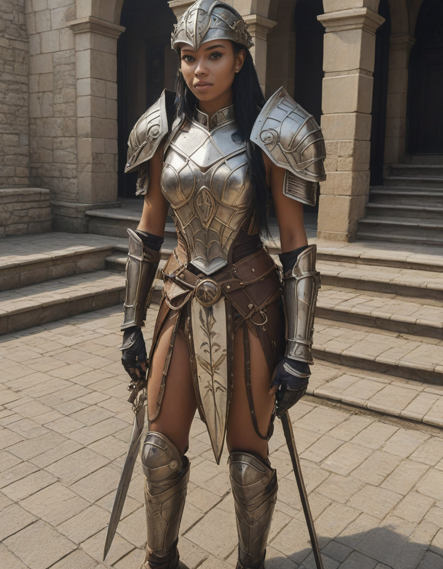wearing a complete full set of armor,full set of armor, helmet, breastplate, gauntlets, greaves, pauldrons, vambraces, cuisses, sabatons, gorget, tassets, bracers, cuirass, faulds, plackart, spaulders, and besagews, , wide-angle lens, exaggerated, caricatured comic style, Unhinged chaos, Watching the world whizz by in technicolor, coy, very very very cute, attractive, appalled, a stunning, breathtaking beauty, bling grill, skyrim npc,
