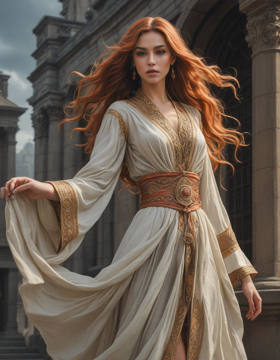 newspaper editorial photography, diablo, nostalgia for the 90s anime, Vivid oil paints, snickering, Furrowed concentration, looking at viewer, elegantly draped rich crinkled robes swirling gracefully, cheerful