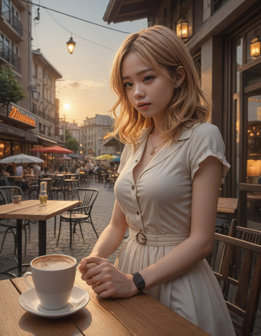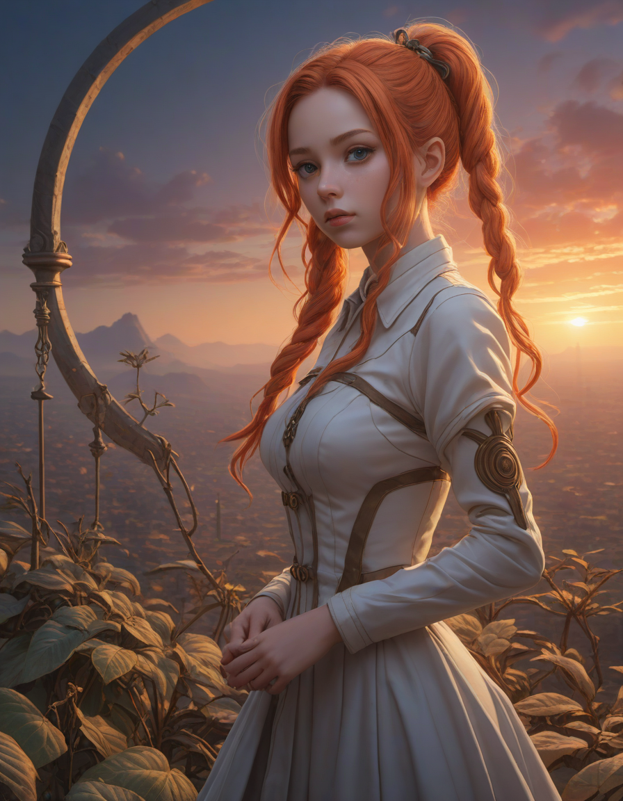 Nervous meeting, gripped by an emotion, extremely detailed, Anime-style hourglass figure, torrid sunset, electrifying aether spiraling about