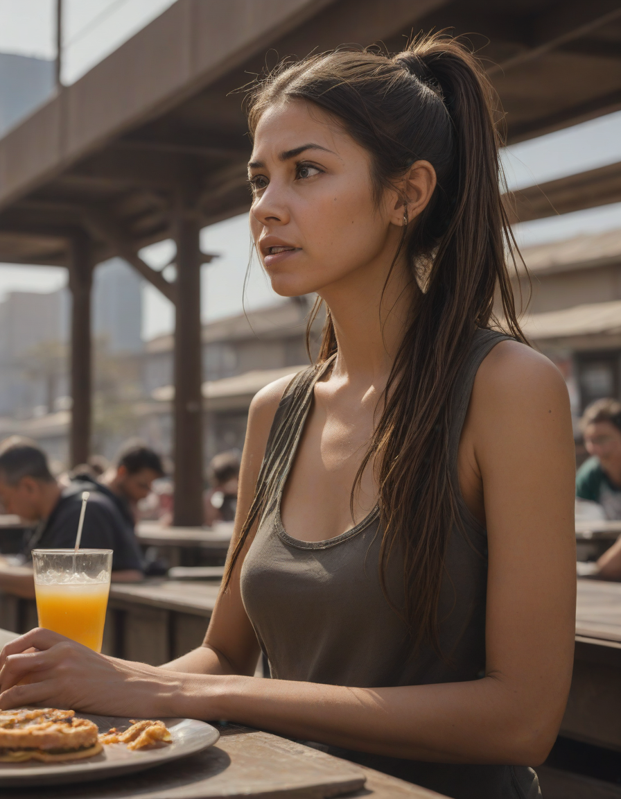 awestruck, Scrutinizing, suspenseful chase scene, tangerine skyline, cheering, Looking up, imp